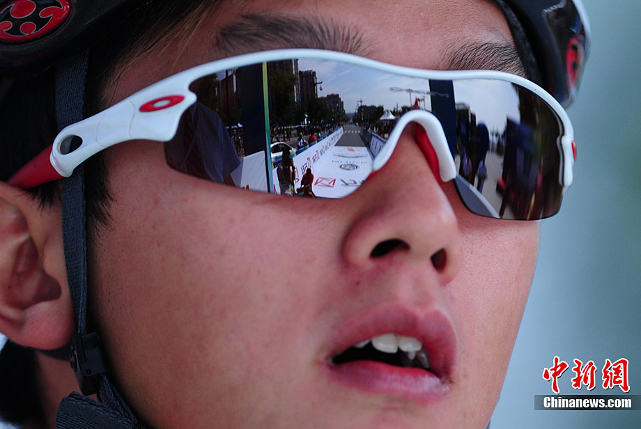 9月10日上午,首屆環(huán)中國國際公路自行車賽序幕賽(個人計時賽)在西安市曲江池畔舉行,結(jié)果德國紐特里什車隊的車手德克·穆勒(中)獲得本賽段冠軍,奪得本次比賽的首件黃色領(lǐng)騎衫。中新社記者 侯宇 攝