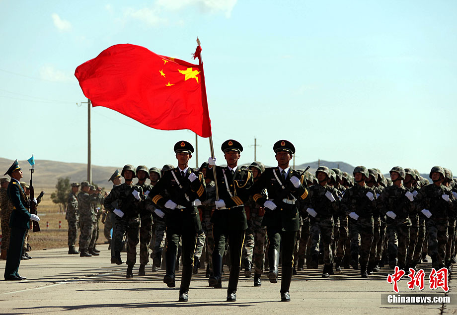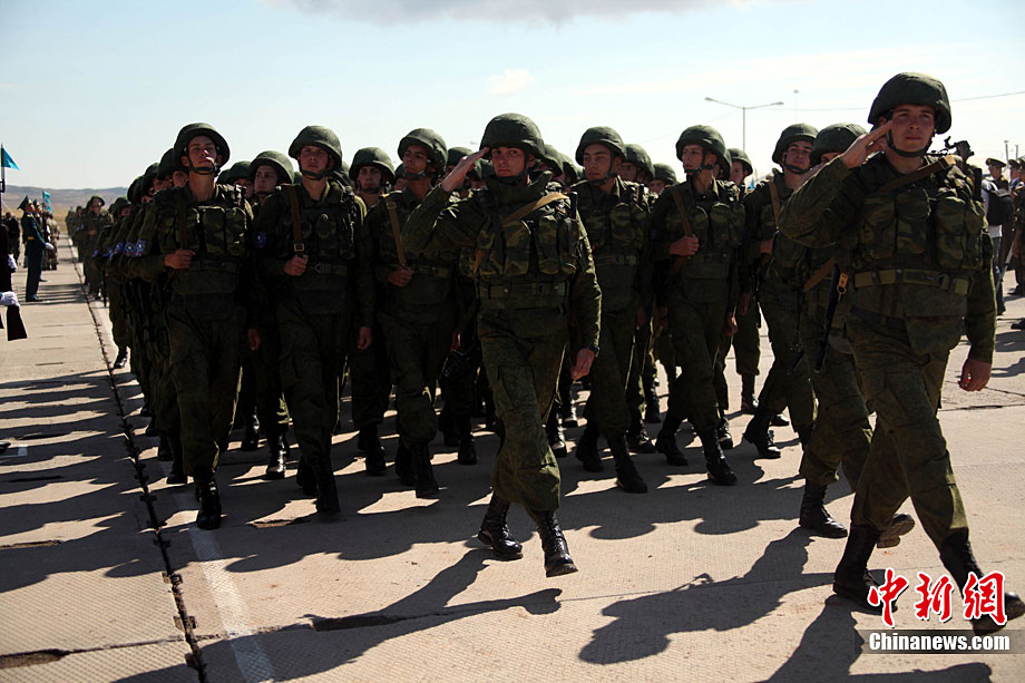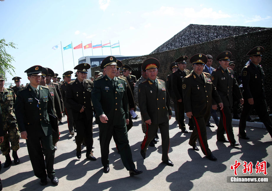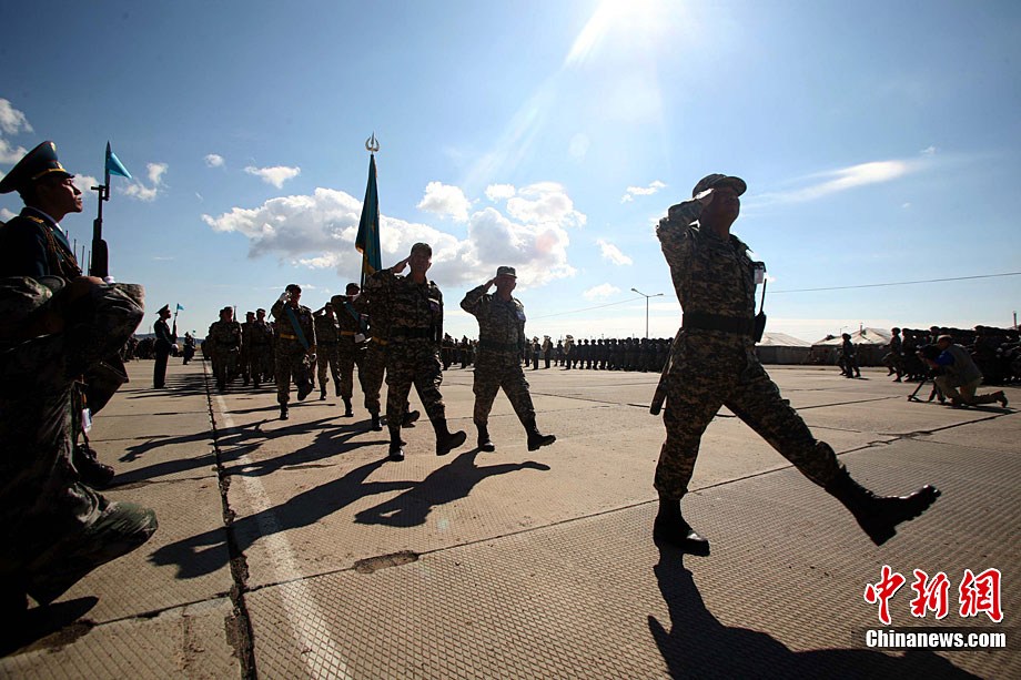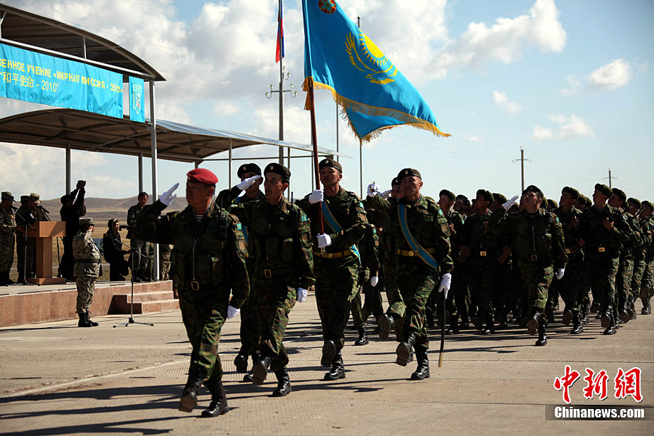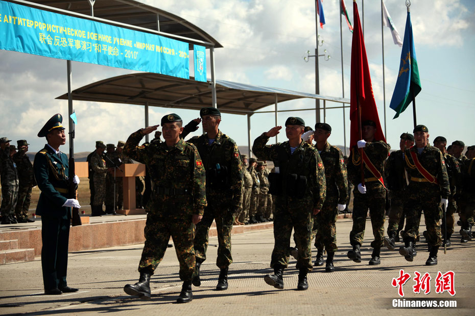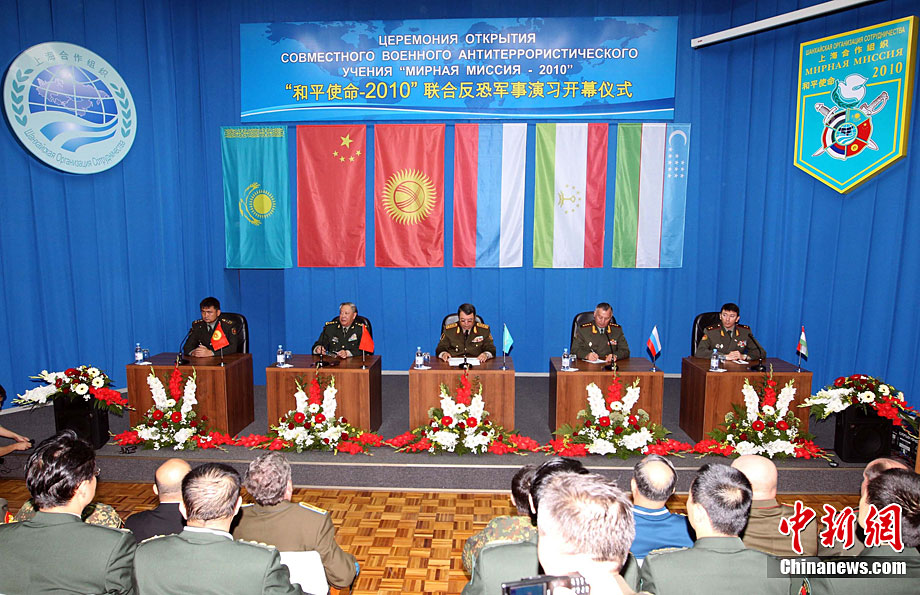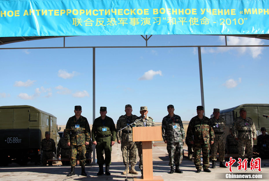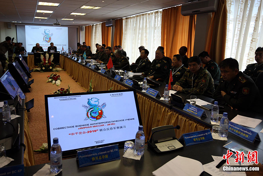 9月10日,參演“和平使命-2010”上合組織成員國武裝力量總參謀長(參謀長委員會(huì)主席)在哈薩克斯坦阿拉木圖舉行戰(zhàn)略磋商。戰(zhàn)略磋商結(jié)束后,參演五國總長簽署并向聯(lián)合反恐軍事演習(xí)各方總導(dǎo)演頒發(fā)戰(zhàn)役訓(xùn)令,“和平使命-2010”聯(lián)合反恐軍事演習(xí)正式開始。中新社發(fā) 朱民 攝