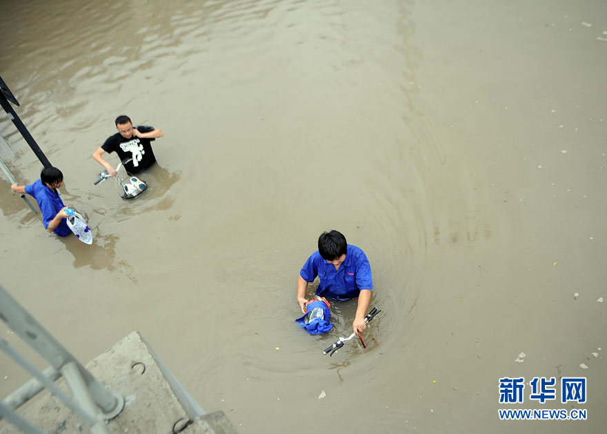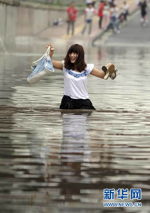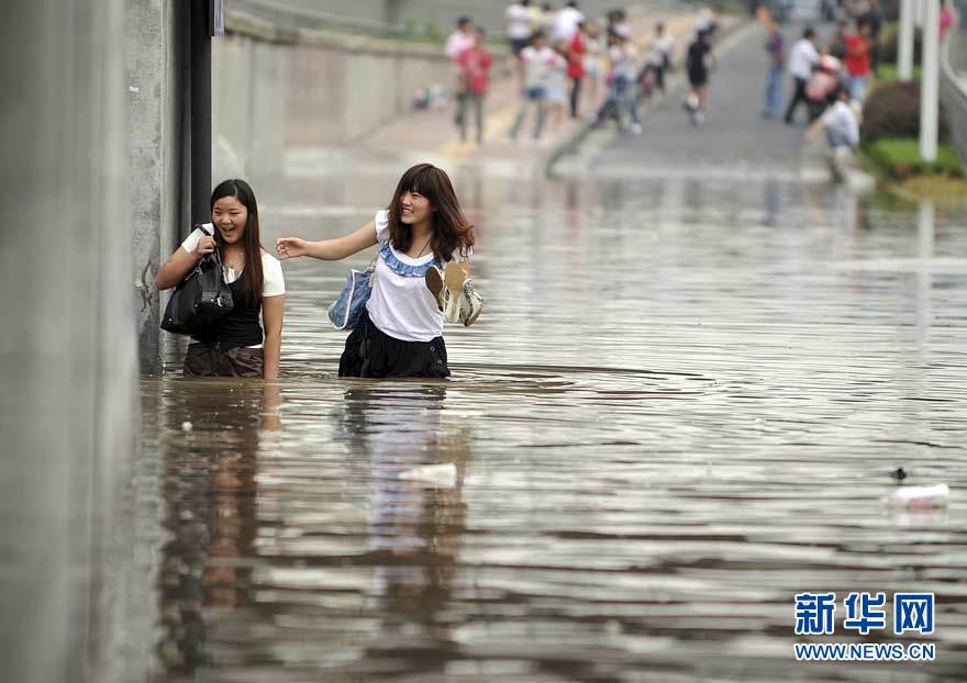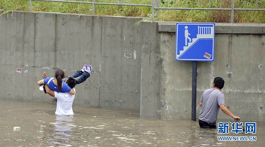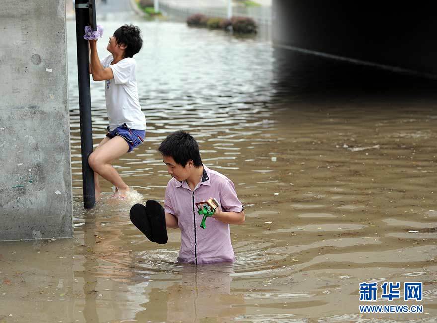 9月11日下午,杭州市濱江區(qū)火炬大道鐵路涵洞內(nèi)積水嚴(yán)重,行人涉水而行。受“莫蘭蒂”影響,自9月11日凌晨4時(shí)起,杭州市濱江區(qū)突降暴雨,多處地段出現(xiàn)積水,據(jù)氣象部門測算,該區(qū)內(nèi)最大降雨量超過230毫米,為歷史罕見。胡元勇 攝 圖片來源:新華網(wǎng)