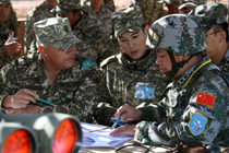 9月14日,“和平使命-2010”上海合作組織(上合組織)成員國(guó)武裝力量聯(lián)合反恐軍事演習(xí),按計(jì)劃在哈薩克斯坦馬特布拉克訓(xùn)練場(chǎng)進(jìn)行聯(lián)演戰(zhàn)役準(zhǔn)備階段的首次合練。圖為中方參演部隊(duì)的坦克參加合練。中新社記者 孫自法 攝