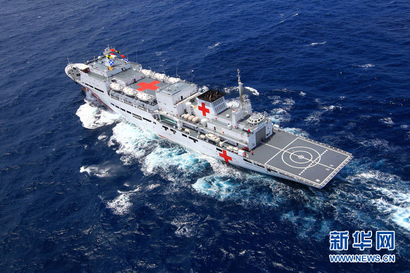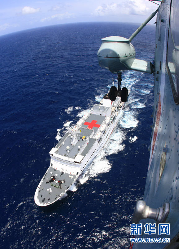 執(zhí)行“和諧使命—2010”任務的中國“和平方舟”號醫(yī)院船安全航行5300余海里后,于15日駛抵亞丁灣。2天后,醫(yī)院船將與正在亞丁灣海域執(zhí)行護航任務的中國海軍第六批艦艇編隊會合,并為護航官兵展開全方位的醫(yī)療服務。“和平方舟”號醫(yī)院船8月31日從中國舟山啟航,前往亞丁灣海域及吉布提、肯尼亞、坦桑尼亞、塞舌爾、孟加拉國等亞非五國執(zhí)行“和諧使命—2010”任務。查春明 攝 (圖片來源:新華網)