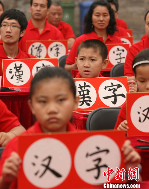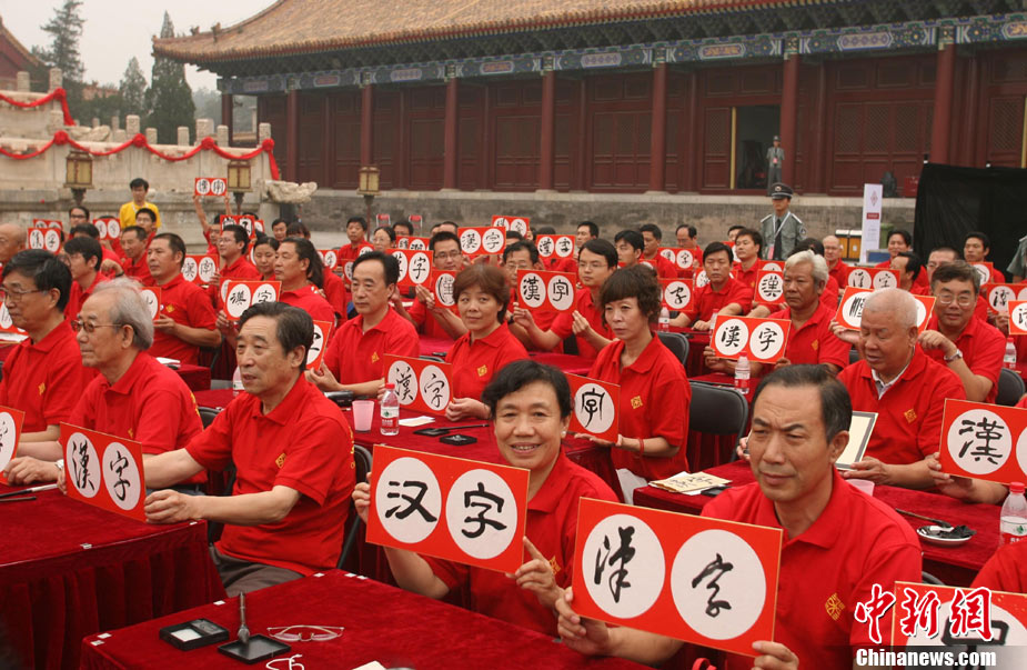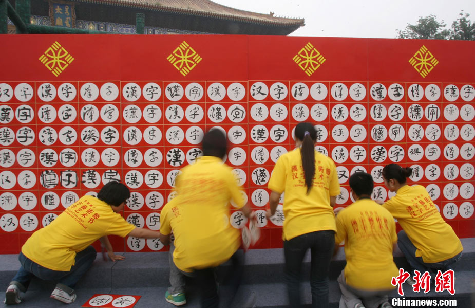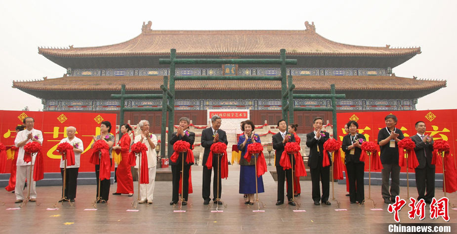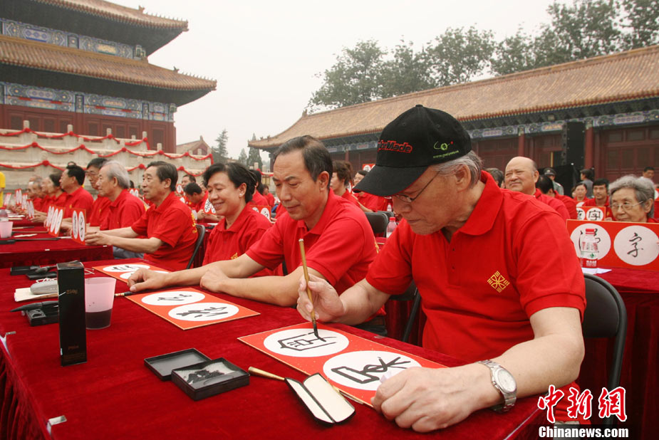 9月16日,北京兩百名書法愛(ài)好者在太廟前書寫各種字體的漢字,并共同完成“提筆、蘸墨、落筆、展卷”傳統(tǒng)程序。當(dāng)日,首屆“兩岸漢字藝術(shù)節(jié)”在北京太廟開(kāi)幕。本次藝術(shù)節(jié)由中國(guó)藝術(shù)研究院、中華文化聯(lián)誼會(huì)、臺(tái)灣文化總會(huì)、河南省安陽(yáng)市政府聯(lián)合主辦,中國(guó)藝術(shù)研究推廣中心、臺(tái)灣中華新文化發(fā)展協(xié)會(huì)共同承辦。中新社發(fā) 蘇丹 攝