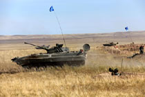 當(dāng)?shù)貢r(shí)間9月15日,“和平使命-2010”上海合作組織成員國(guó)武裝力量聯(lián)合反恐軍事演習(xí),按計(jì)劃在哈薩克斯坦馬特布拉克訓(xùn)練場(chǎng)成功進(jìn)行聯(lián)演戰(zhàn)役準(zhǔn)備階段的第二次合練——無彈藥消耗全員全裝實(shí)兵合練,旨在按演習(xí)科目和進(jìn)程,開展實(shí)兵現(xiàn)地推演。圖為參演官兵攻入“恐怖分子”盤踞村鎮(zhèn)。中新社記者 孫自法 攝