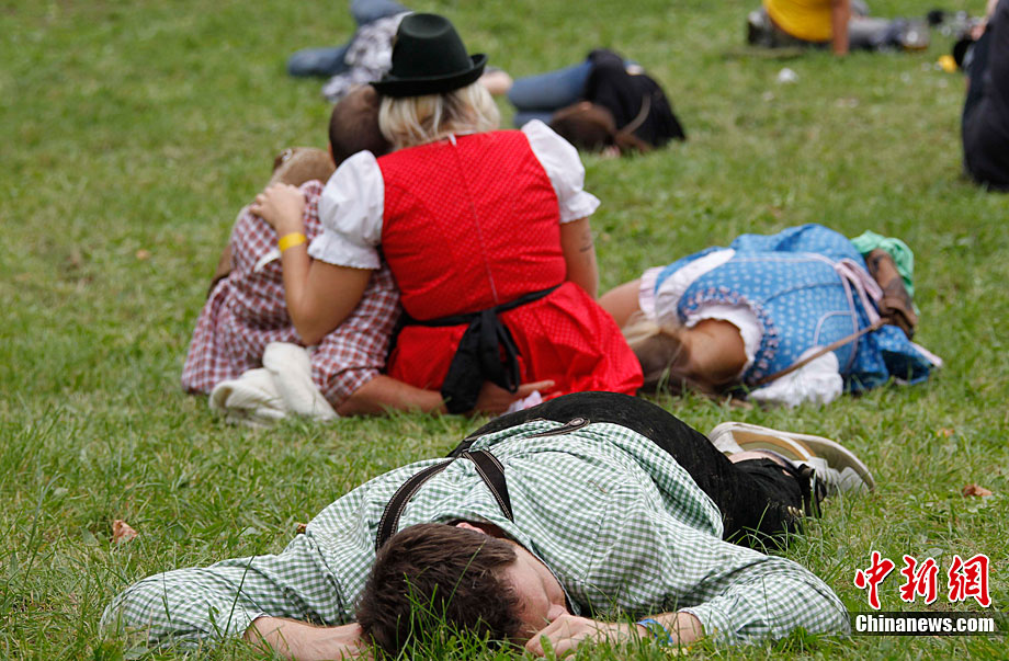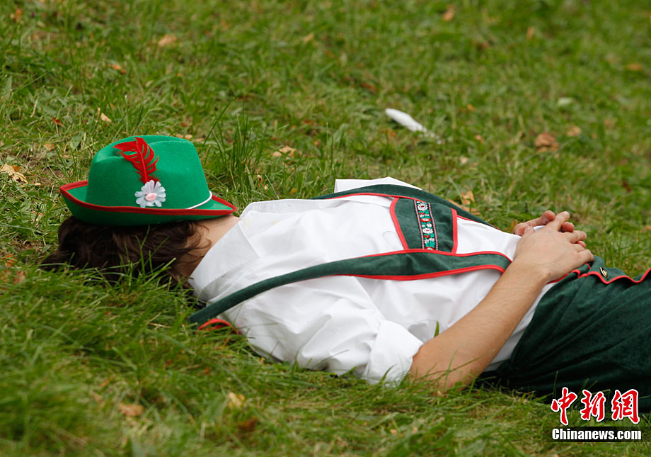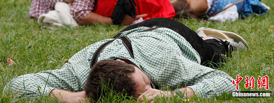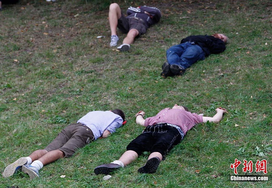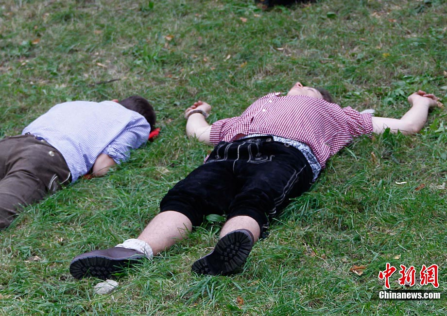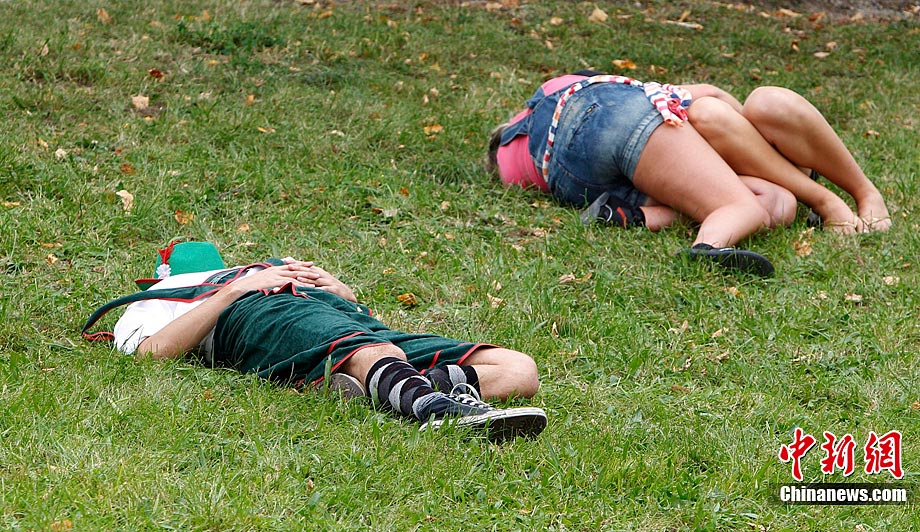 當(dāng)?shù)貢r間9月18日,慕尼黑啤酒節(jié)上游客喝醉后躺在草坪上酣睡。第177屆德國慕尼黑啤酒節(jié)當(dāng)日正式開幕,迎來了200周歲生日。