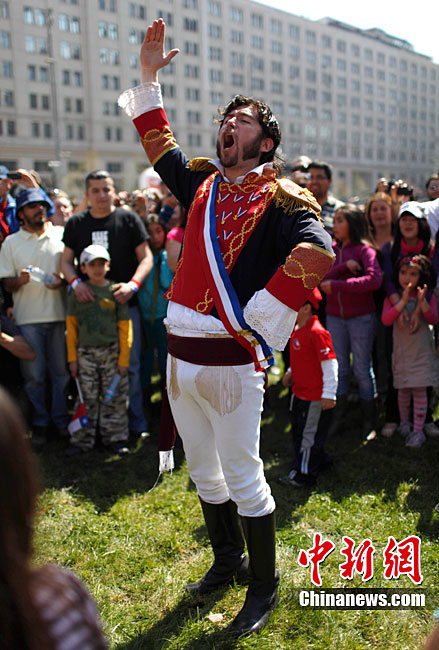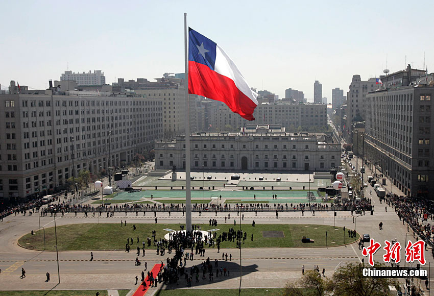 當?shù)貢r間9月17日,智利圣地亞哥總統(tǒng)府拉莫內(nèi)達宮,智利獨立200周年慶;顒优e行。