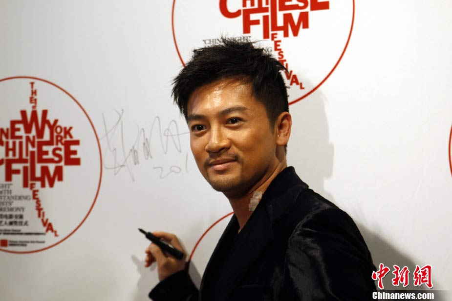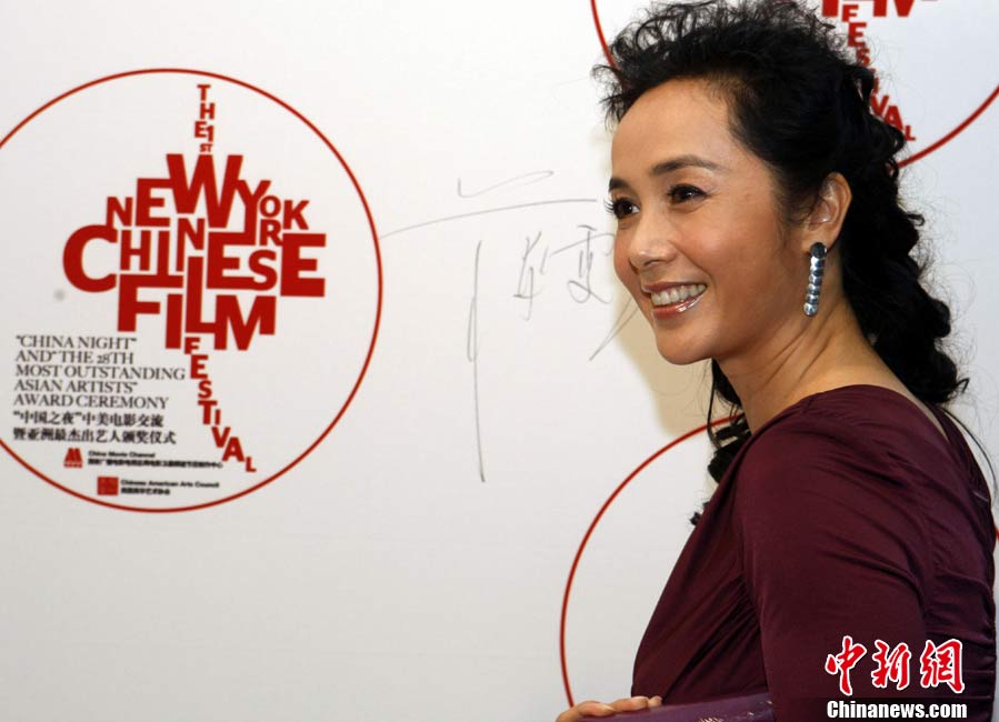 當?shù)貢r間9月18日晚,首屆“紐約中國電影節(jié)”在紐約林肯中心舉行開幕式。圖為中國香港演員張柏芝走完紅毯后,在電影節(jié)的背景板前簽名留影。 中新社記者 孫宇挺 攝