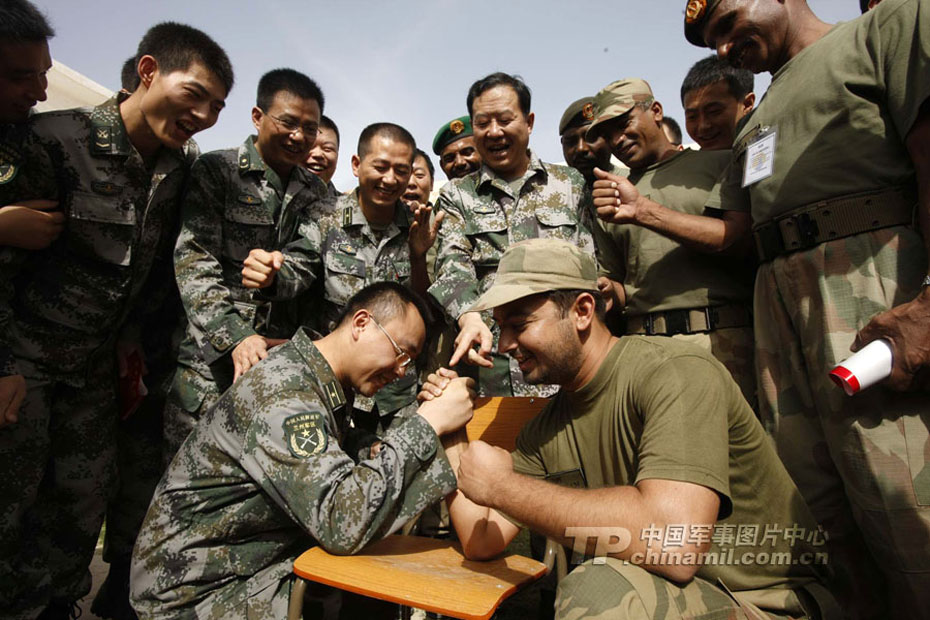 中巴雙方軍人開展掰手腕文體活動(dòng)。圖片來源:中國軍網(wǎng) 李翔 攝