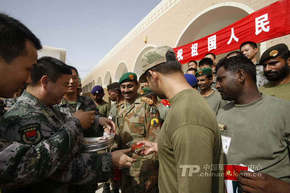 中國援巴直升機(jī)救援隊(duì)的隊(duì)員到達(dá)海德拉巴市巴方駐軍軍營后,積極主動(dòng)協(xié)調(diào)幫助駐地巴方軍人研究制定直升機(jī)運(yùn)送物資、搶救傷員等一系列事宜,連日來,通過雙方軍人的共同磋商已達(dá)成了救災(zāi)預(yù)案,雙方軍人在交往中增進(jìn)了友誼,為慶祝中國傳統(tǒng)的中秋佳節(jié),巴方官兵來到中方援巴人員駐地,開展一系列文化慶;顒(dòng)。