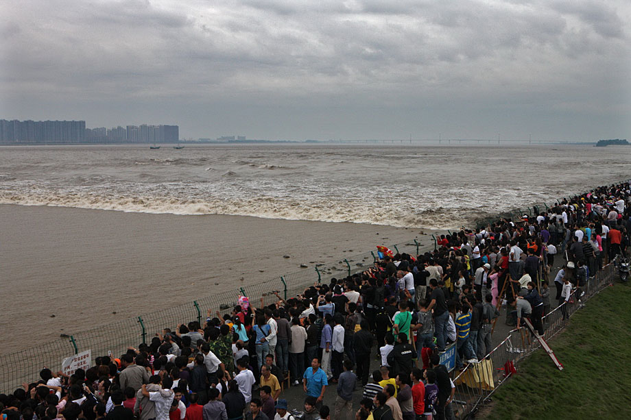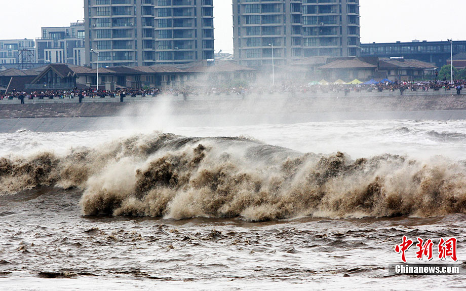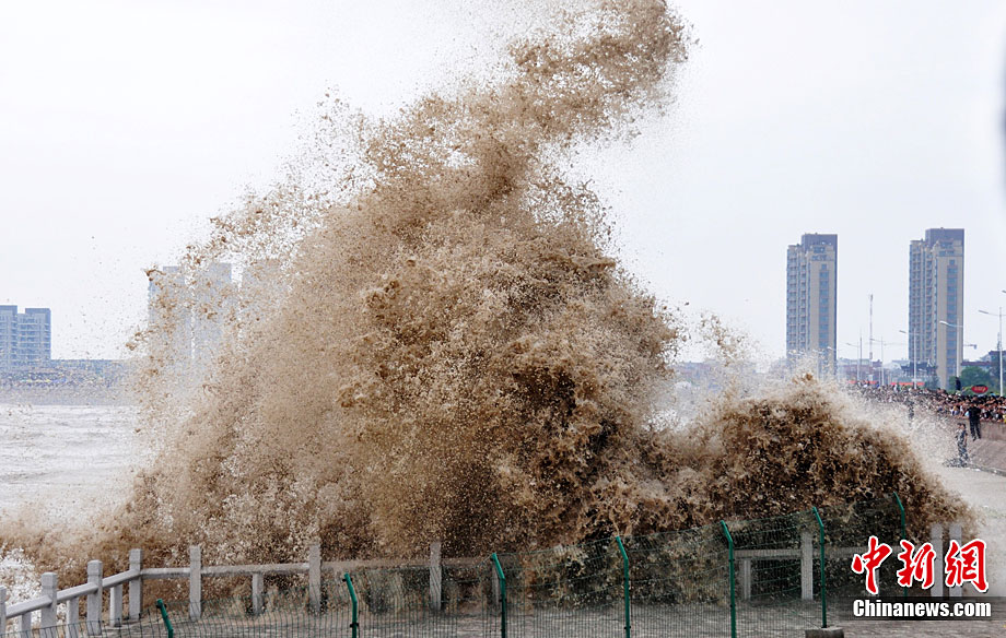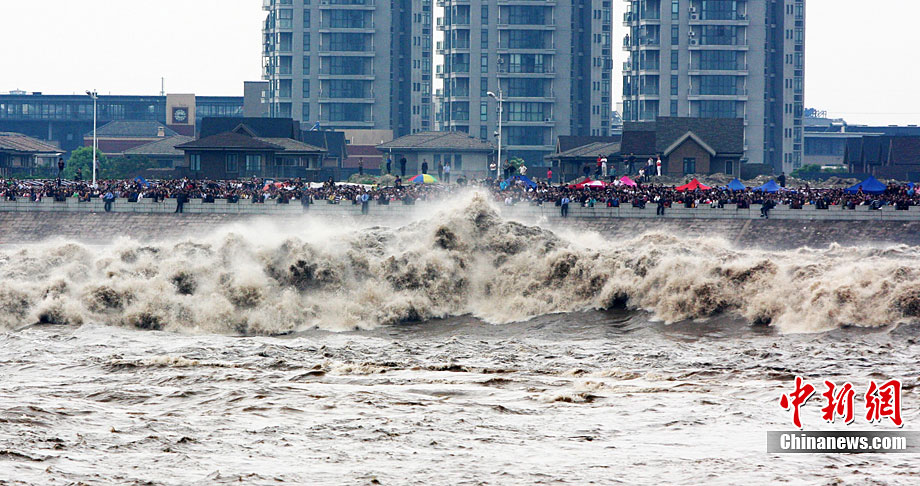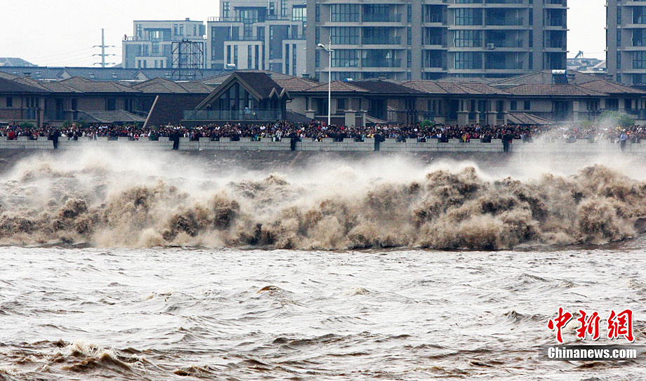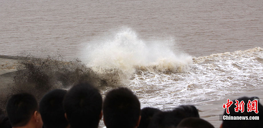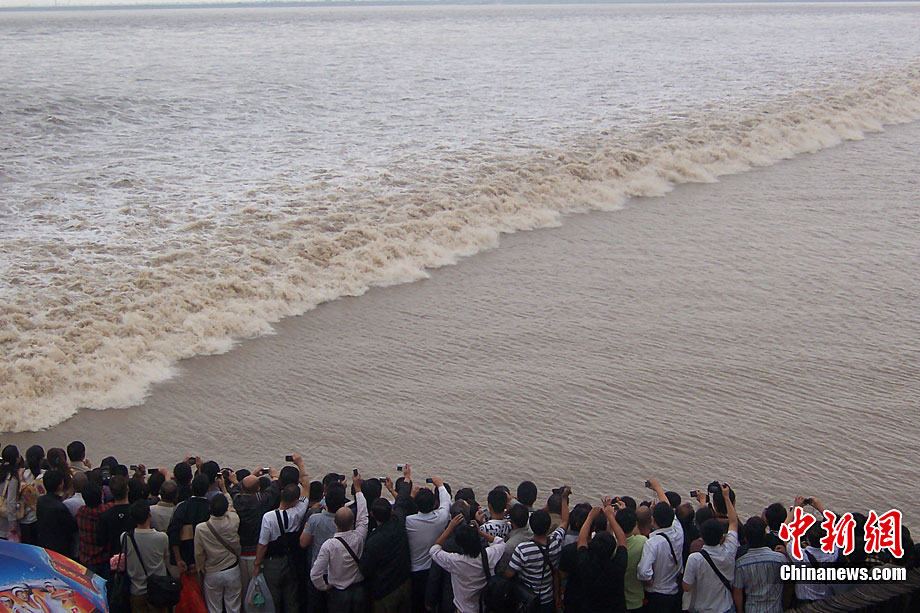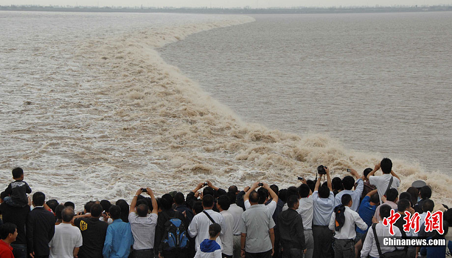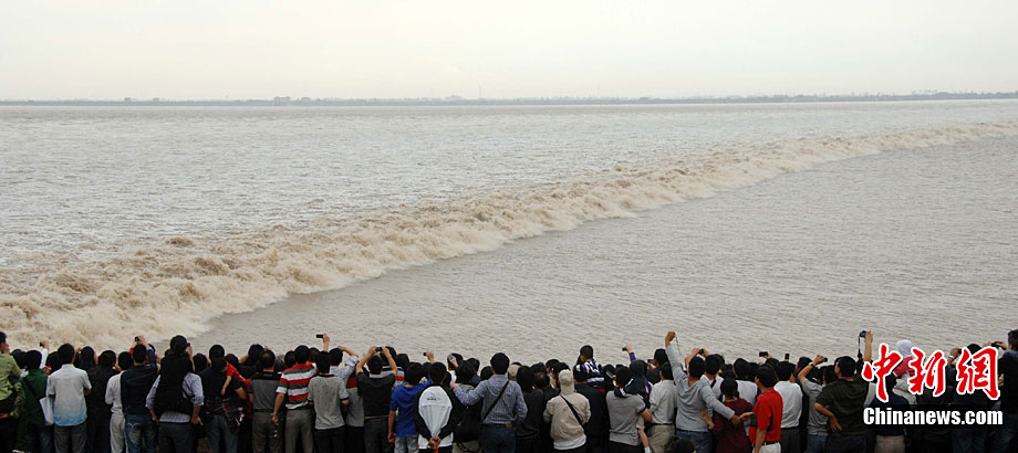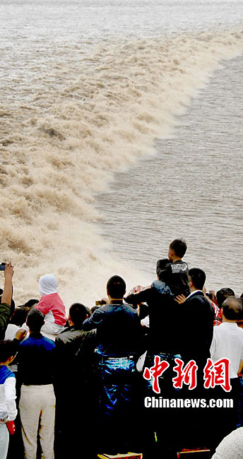 八月十八潮,壯觀天下無。9月25日12時(shí)38分,近八年最大錢塘潮如約而至抵達(dá)浙江省海寧鹽官,來自世界各地的游客爭(zhēng)睹“一線潮”景觀。汪恩民 攝