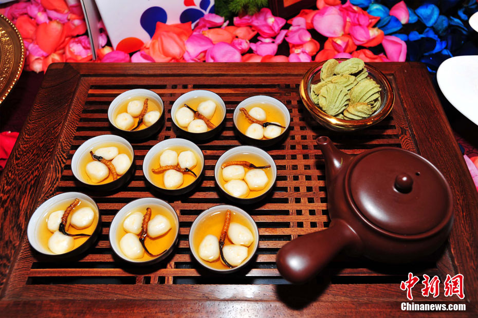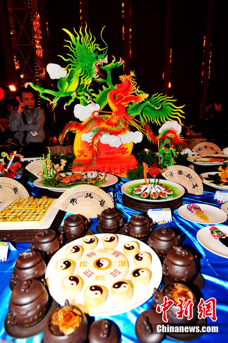 26日下午,第七屆中國(guó)國(guó)際美食旅游節(jié)在成都世紀(jì)城嬌子國(guó)際會(huì)議中心開(kāi)幕。成都榮獲“世界美食之都”后的首道創(chuàng)意大餐在美食旅游節(jié)上正式亮相,“成都盛宴”薈萃了60桌主題宴席和經(jīng)典菜品,共計(jì)約1000款菜品,分川菜精品展示區(qū)、外國(guó)菜精品展示區(qū)、八大菜系精品展示區(qū)、品牌火鍋展示區(qū)、區(qū)(市)縣特色展示區(qū)。 安源 攝
