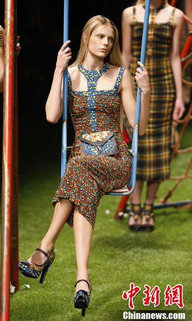9月26日,在意大利米蘭舉行的2011米蘭春夏時(shí)裝周上,上演了一場(chǎng)“草地T臺(tái)秀”,眾多世界名模在綠地上絢麗登場(chǎng)。