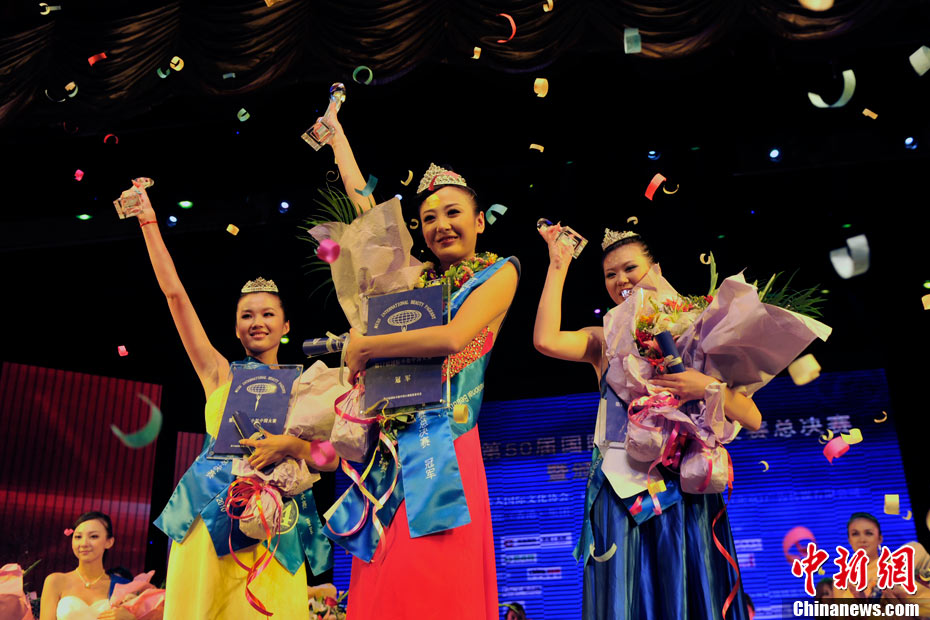 9月26日晚,第50屆國際小姐中國大賽總決賽暨頒獎(jiǎng)晚會(huì)在北京之夜香艷落幕。43名佳麗通過旗袍、個(gè)性服飾、泳裝和晚禮服的展示,動(dòng)聽的歌聲和優(yōu)美的舞蹈為眾人獻(xiàn)上了一場精彩的視覺盛宴。經(jīng)過激烈的角逐和比拼,來自湖北的41號(hào)佳麗袁思怡奪得冠軍,榮膺“中國小姐”稱號(hào)。34號(hào)武靜羽和44號(hào)魏嘉寶分獲亞軍和季軍。中新網(wǎng)記者 金碩 攝