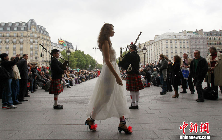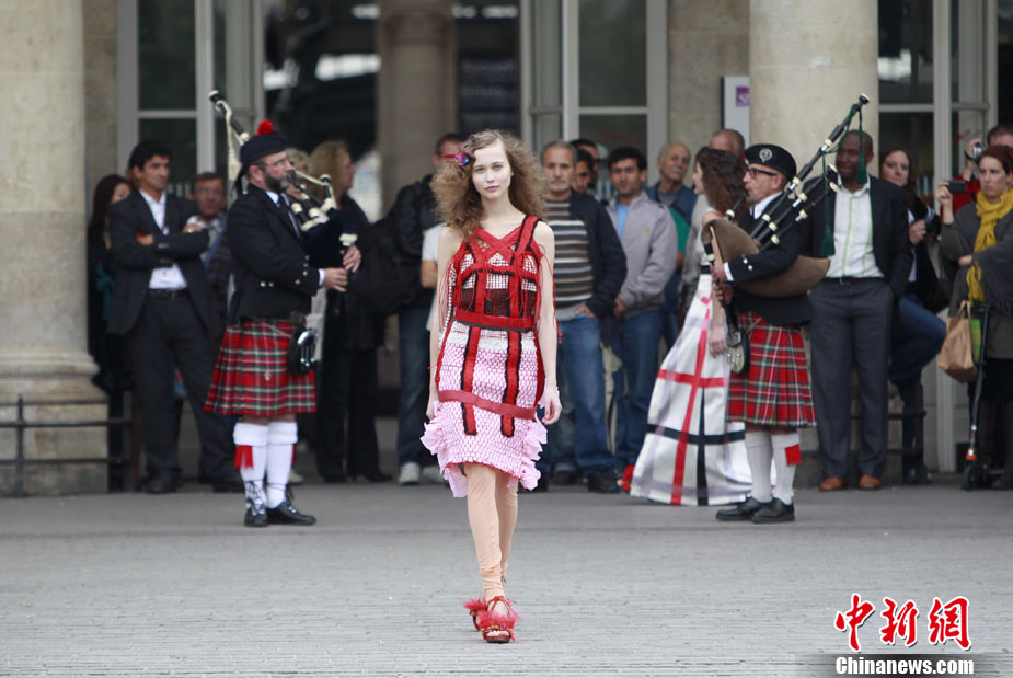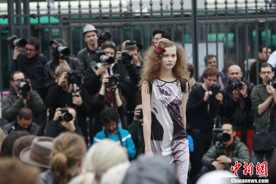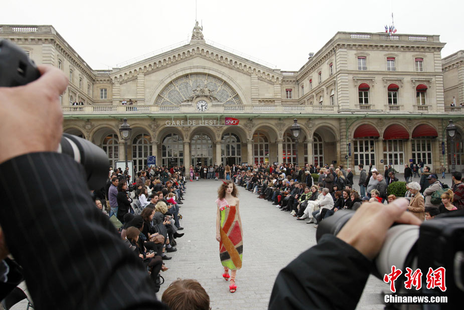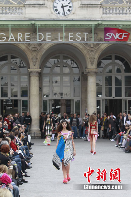 9月28日,法國(guó)巴黎,眾靚模在巴黎火車站(Gare de L’est )上演了一場(chǎng)另類走秀。