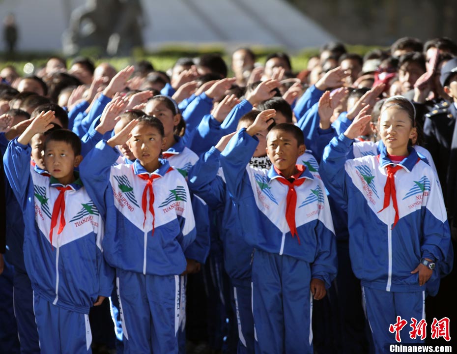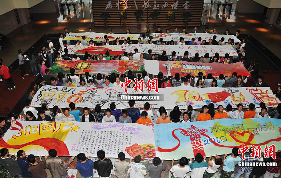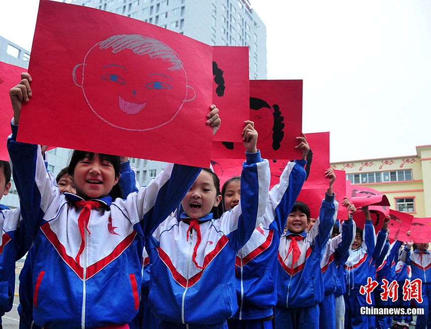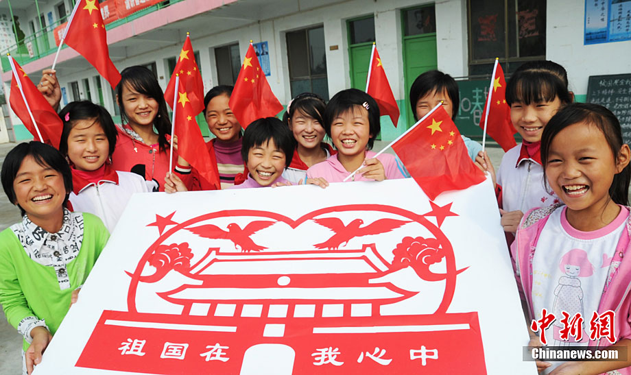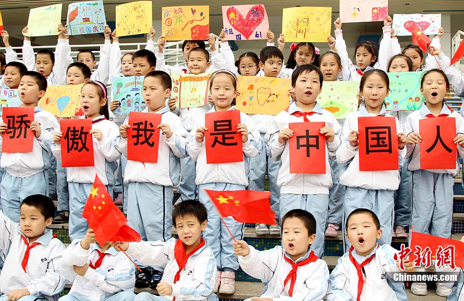 9月27日,一場(chǎng)以“我驕傲,我是中國人”為主題的國慶61周年誦讀繪畫賽活動(dòng)在蘇州市一所小學(xué)校舉行,該校百余名一、二年級(jí)學(xué)生以集體誦讀和繪畫展示等形式,表達(dá)對(duì)偉大的祖國贊美與衷心祝福。王建中 攝 圖片來源:cnsphoto