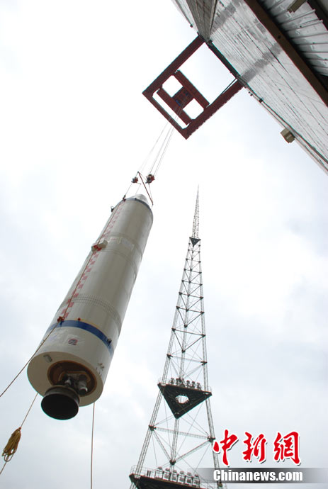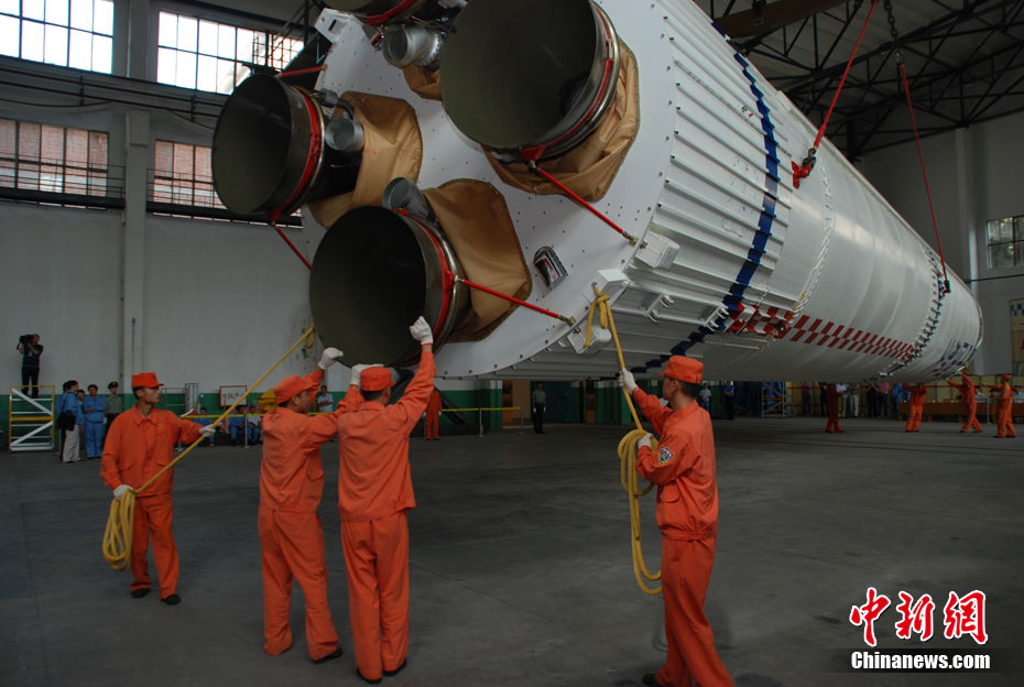 繼嫦娥一號衛(wèi)星圓滿完成我國首次繞月探測工程之后,嫦娥二號繞月探測衛(wèi)星作為我國探月工程二期的先行者,又踏上了奔月的征程。2010年9月中旬以來,西昌衛(wèi)星基地緊鑼密鼓地為“嫦娥二號”衛(wèi)星發(fā)射做了大量的準(zhǔn)備工作。圖為吊裝火箭助推場景。 中新社發(fā) 張雷 王銳 攝 圖片來源:cnsphoto
