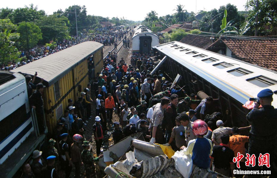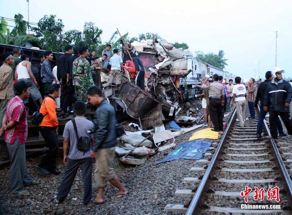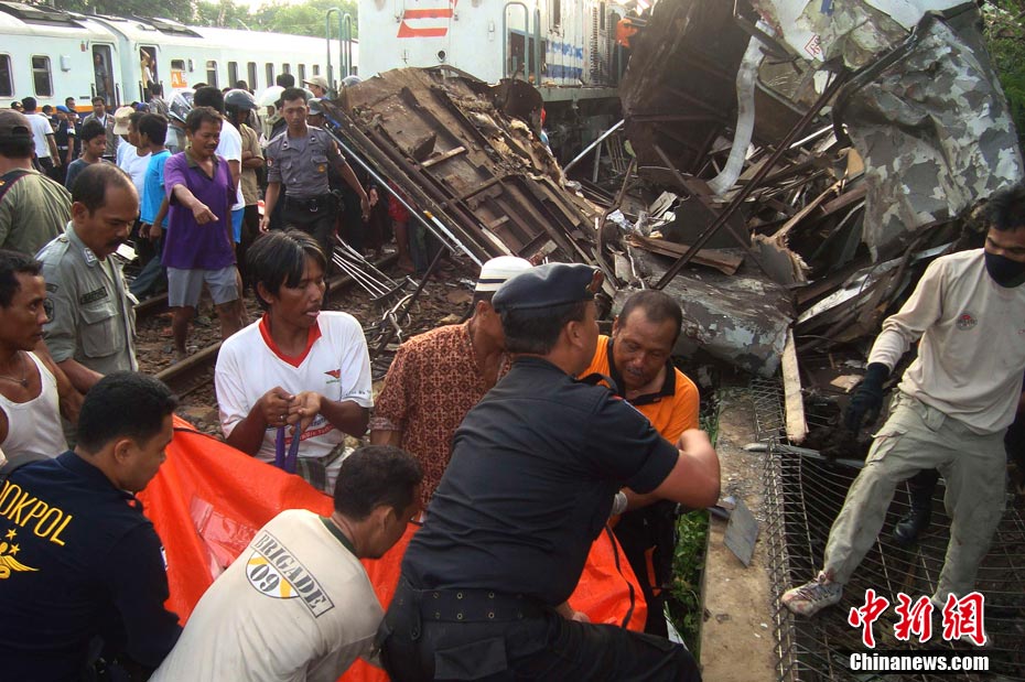 印尼中爪哇省2號發(fā)生火車相撞事故,至少已造成33人死亡。 事發(fā)在中爪哇北岸的珀塔魯坎,一列行駛中的列車,于凌晨約3點(diǎn)鐘,撞向一列停在車站內(nèi)的列車,當(dāng)時大部分人都在睡眠中,因此事故造成嚴(yán)重傷亡。