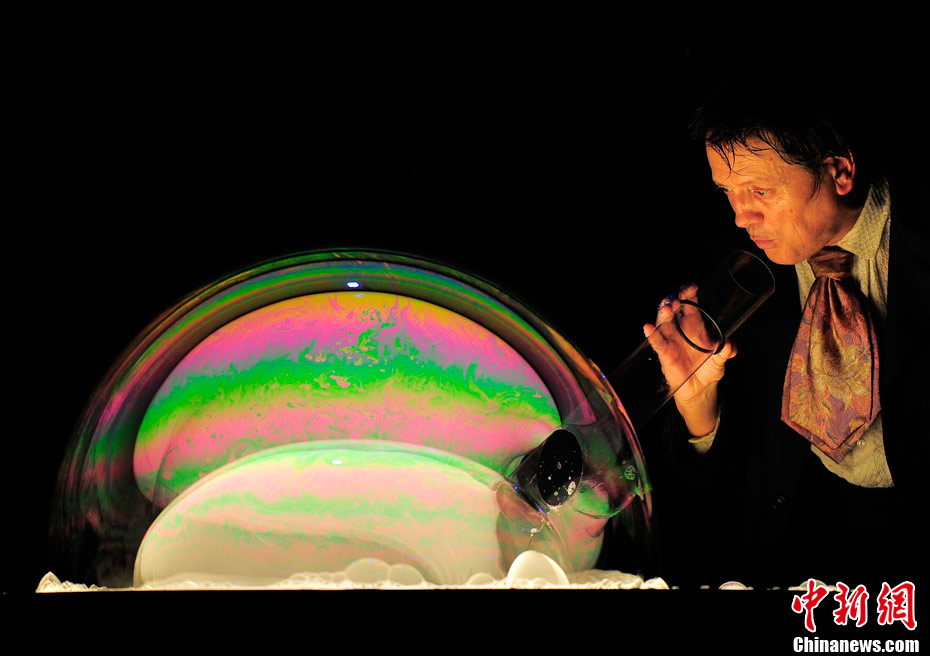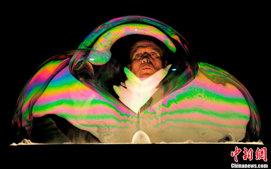當(dāng)?shù)貢r(shí)間10月2日,西班牙肥皂泡魔術(shù)師佩普-布奧表演他的拿手好戲“泡泡秀”。