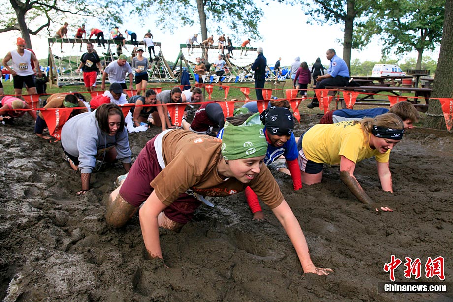 當?shù)貢r間10月3日,數(shù)千名跑步愛好者參加了在美國紐約梅里爾島舉行的泥地跑步大賽。參賽者要在長達一英里的路程中趟過泥地、穿過海灘和各種障礙抵達終點。