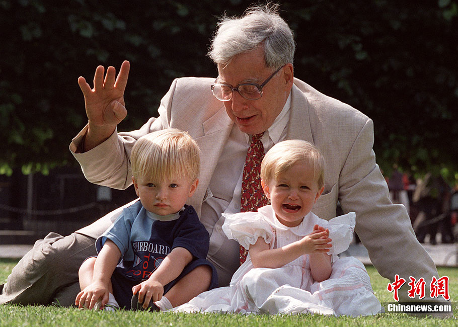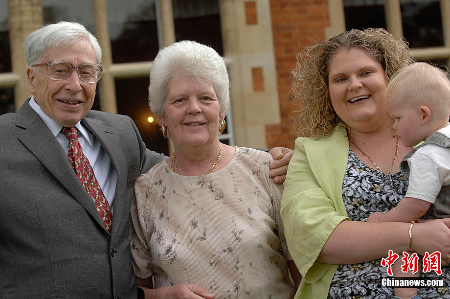 被譽(yù)為“試管嬰兒之父”的英國科學(xué)家羅伯特·愛德華茲10月4日獲得諾貝爾生理學(xué)或醫(yī)學(xué)獎,他因身體欠佳未對獲獎消息發(fā)表感言。圖為2008年7月12日,愛德華茲(左)與世界第一個試管嬰兒路易斯(右)和她的兒子、母親合影。