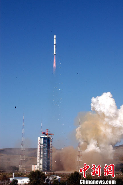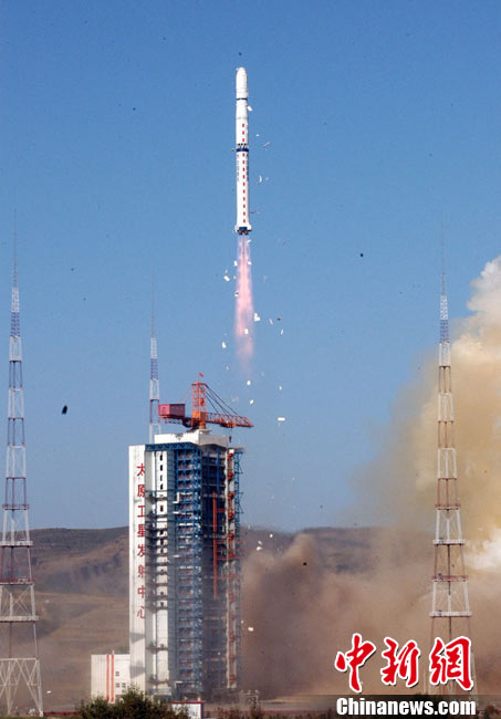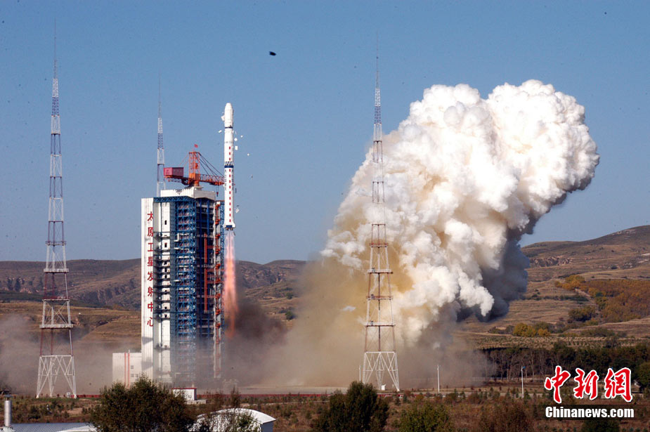 北京時(shí)間10月6日8時(shí)49分,中國(guó)在太原衛(wèi)星發(fā)射中心用“長(zhǎng)征四號(hào)乙”運(yùn)載火箭一箭雙星,成功將“實(shí)踐六號(hào)”04組兩顆空間環(huán)境探測(cè)衛(wèi)星送入太空。中新社發(fā) 尚春雅 攝