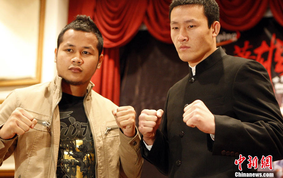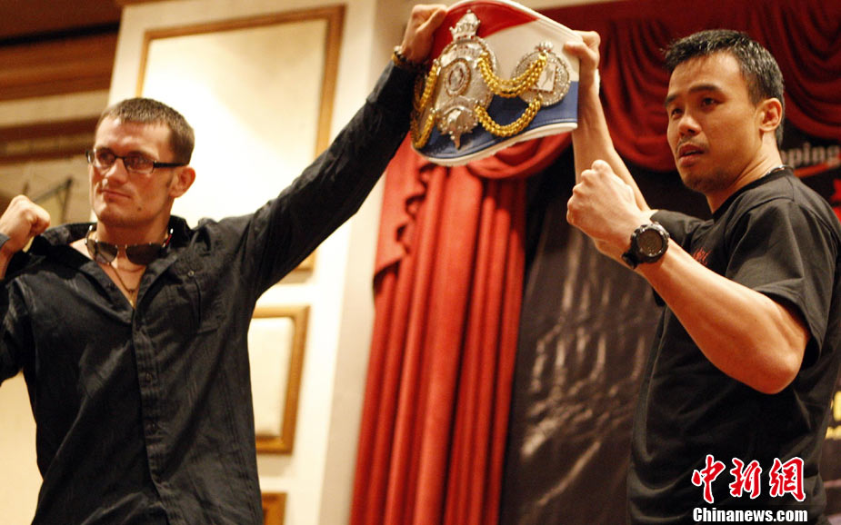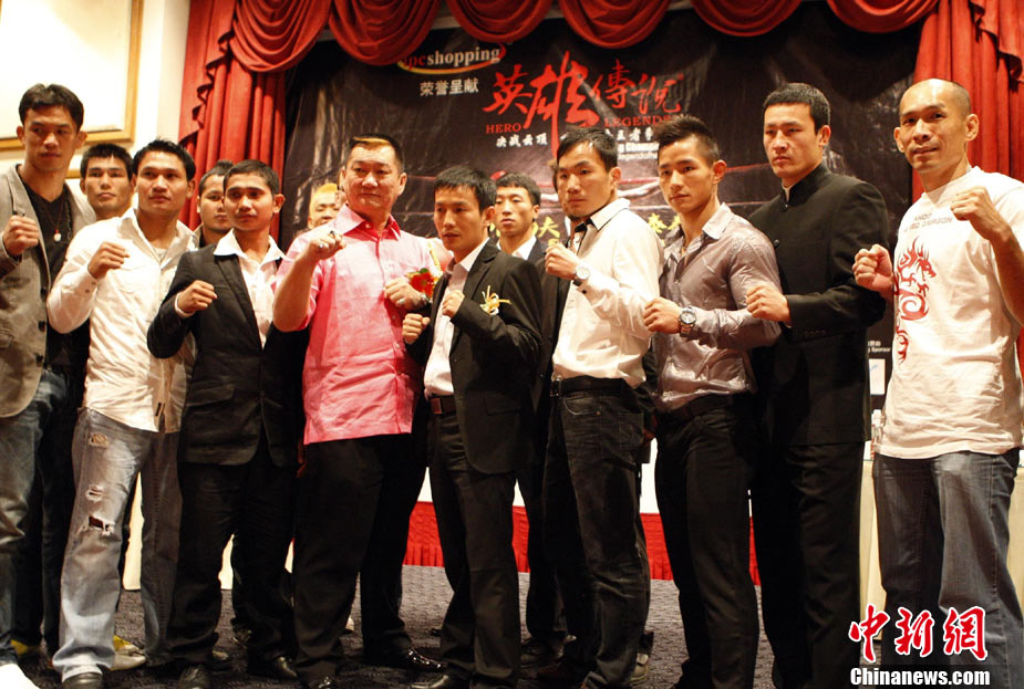 10月7日,“英雄傳說-決戰(zhàn)云頂”世界搏擊王者爭霸賽在馬來西亞吉隆坡舉行賽前發(fā)布會(huì),是次賽事是目前在馬來西亞規(guī)模最大,規(guī)格最高的職業(yè)搏擊比賽,比賽除了五位泰拳選手和五位中國選手參加之外,還有來自日本、美國以及馬來西亞共16位拳手參賽。賽事由來自美國、日本、菲律賓以及中國的國際組織WBC、WCK、K-1的國際職業(yè)裁判擔(dān)任。10月9日該賽將通過衛(wèi)星全球直播,中國亦將有多家電視臺(tái)實(shí)況錄/轉(zhuǎn)播。圖為各國拳手亮相“英雄傳說-決戰(zhàn)云頂”世界搏擊王者爭霸賽賽前發(fā)布會(huì)。 中新社記者 錢興強(qiáng) 攝