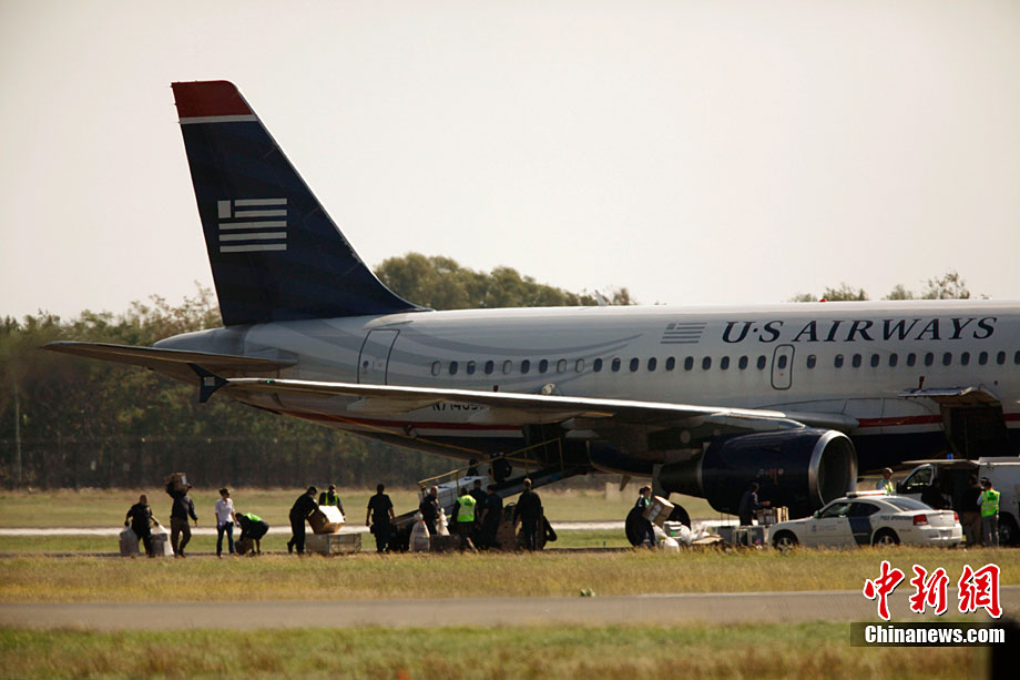 美國航空公司一架客機(jī)當(dāng)?shù)貢r間10月7日因安全原因在起飛前被叫停,全體乘客疏散,全部行李被卸下接受搜查。據(jù)悉,當(dāng)時兩名全美航空公司地勤人員在為1070次航班客機(jī)裝運(yùn)行李時,發(fā)現(xiàn)另一名身著該公司制服的人也參與裝運(yùn),但此人并無相關(guān)身份證件。這兩名員工上前詢問,此人隨即跑掉。隨后兩人立刻通知執(zhí)法部門。目前尚不清楚是否找到危險物品。執(zhí)法人員也尚未找到相關(guān)嫌疑人。
