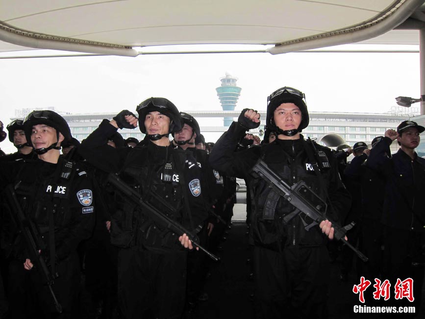 10月12日上午,廣州白云國際機(jī)場(chǎng)公安局舉行亞運(yùn)安保誓師大會(huì),數(shù)百名警員出席大會(huì),在此間保證圓滿完成亞運(yùn)安保任務(wù)。中新社記者 柯小軍 攝
