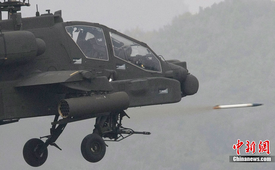 當(dāng)?shù)貢r(shí)間10月13日,韓國(guó)在釜山附近海域開(kāi)始為期兩天的防擴(kuò)散聯(lián)合演習(xí)。此次演習(xí)由韓國(guó)軍隊(duì)主導(dǎo),美國(guó)、日本等15個(gè)國(guó)家參加。其中,韓國(guó)、美國(guó)、日本、澳大利亞參與海上攔截演習(xí)。韓軍出動(dòng)兩艘韓國(guó)型驅(qū)逐艦、兩艘登陸艦等艦艇。美國(guó)宙斯盾驅(qū)逐艦、日本4000噸級(jí)驅(qū)逐艦、澳大利亞P-3C巡邏機(jī)等參演。圖為10月13日,美國(guó)AH-64武裝直升機(jī)在韓國(guó)抱川進(jìn)行防擴(kuò)散聯(lián)合演習(xí)中進(jìn)行射擊。