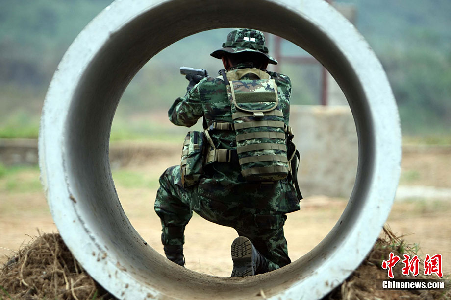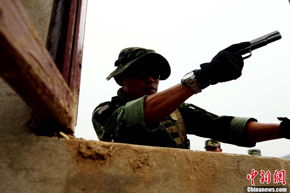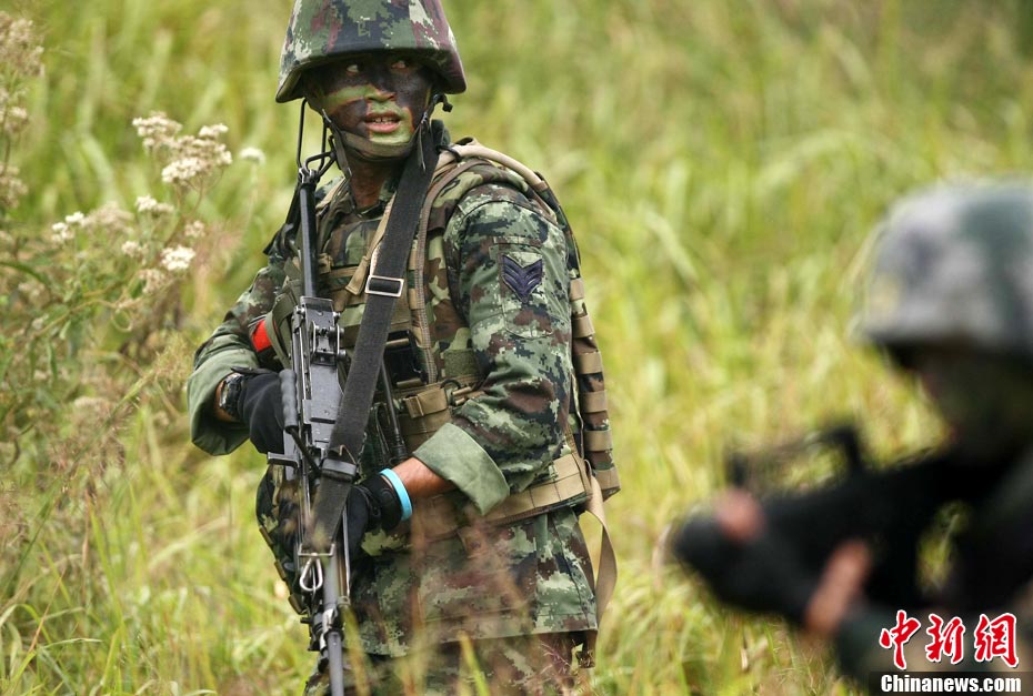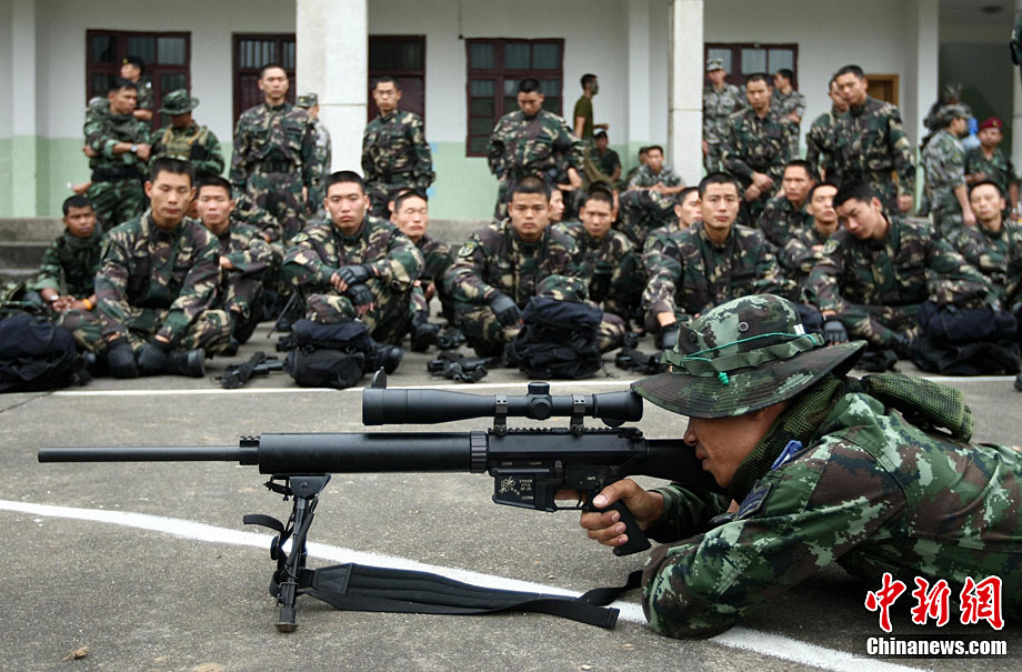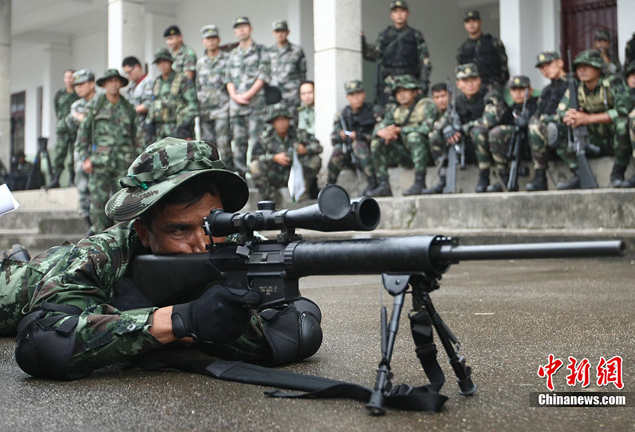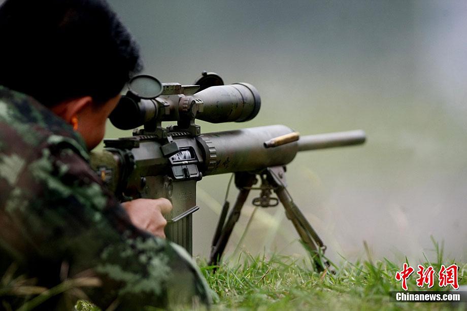 “突擊-2010”中泰陸軍特種部隊(duì)反恐聯(lián)合訓(xùn)練10月6日至20日在廣西壯族自治區(qū)桂林進(jìn)行。圖為身著偽裝服的狙擊手。中新社記者 杜洋 攝
