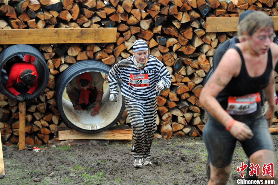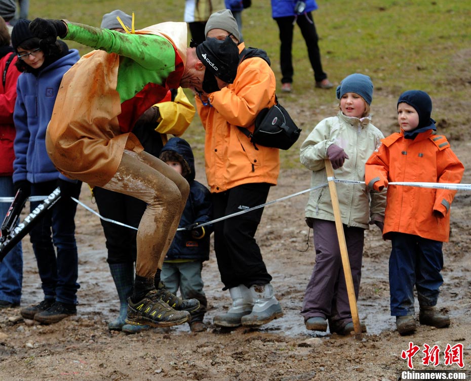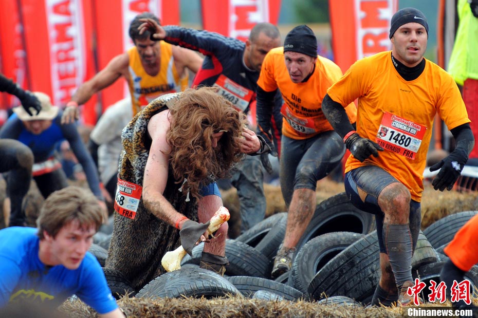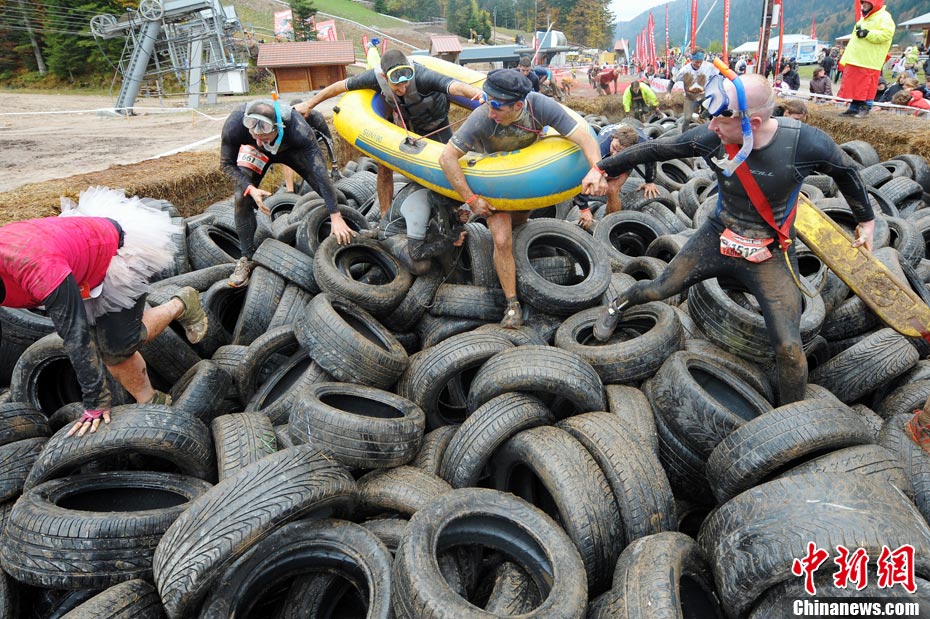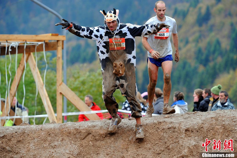 當(dāng)?shù)貢r(shí)間2010年10月17日,法國(guó)東部布雷斯(La Bresse)人們參加漁夫“狂奔”跑步大賽。