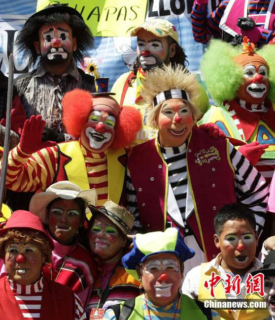 10月20日,數(shù)百名小丑聚集在墨西哥首都墨西哥城,參加在此舉行國際小丑公約大會。