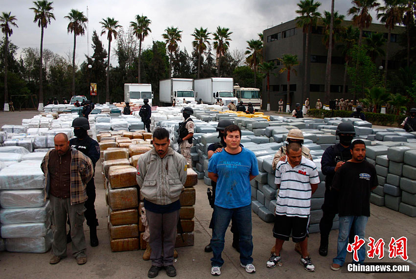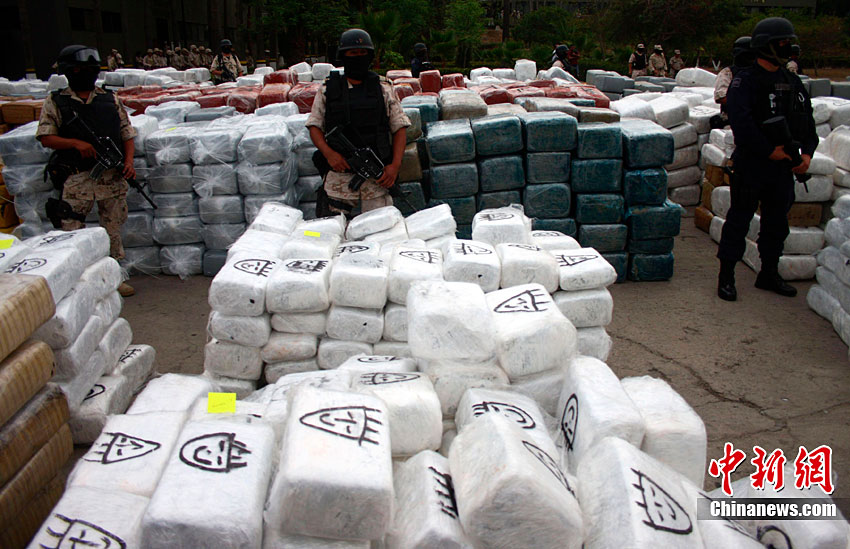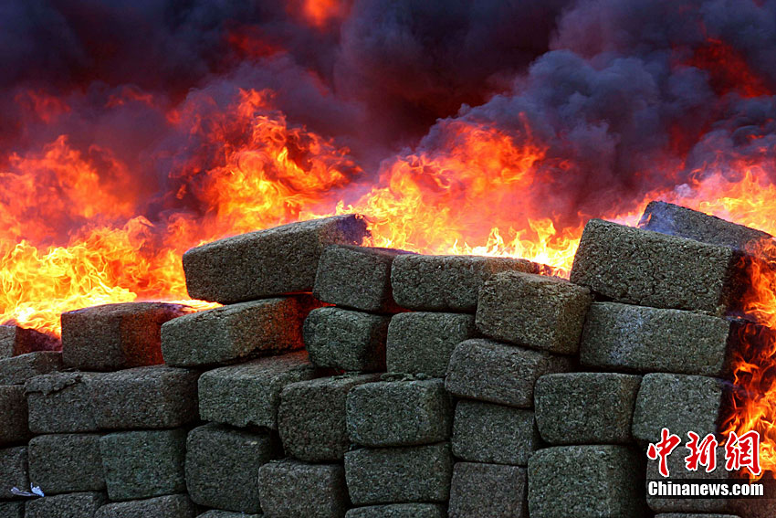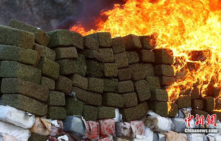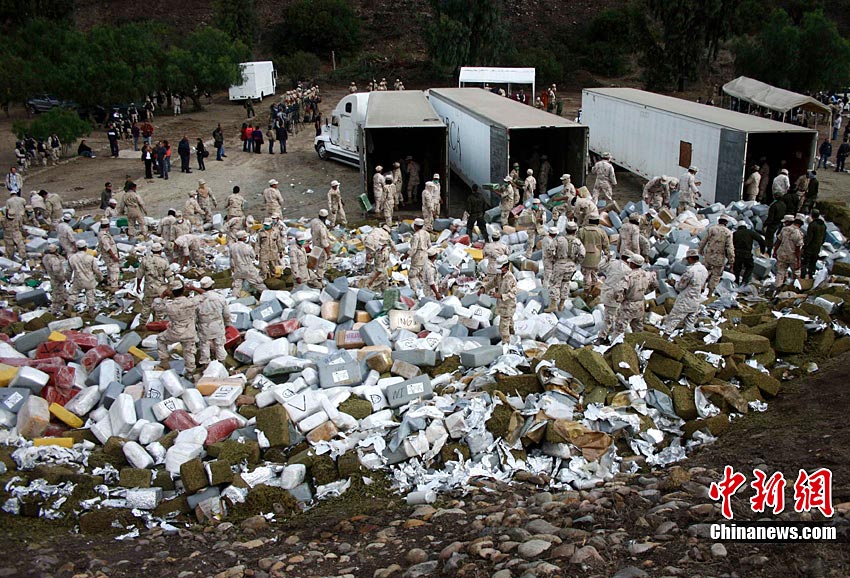 當(dāng)?shù)貢r(shí)間10月20日,墨西哥在北部邊境城市蒂華納的一個(gè)軍營(yíng)內(nèi)集中銷(xiāo)毀了在北部邊境繳獲的134噸大麻。