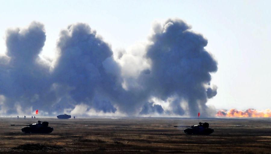 與此同時(shí),某師偵察分隊(duì)乘坐沖鋒舟對(duì)渡口兩岸展開嚴(yán)密搜索警戒,隱蔽于河岸灘頭的防空兵群迅即構(gòu)建防空天網(wǎng)。河面上,沖鋒舟如蛟龍般來回穿梭,不斷施放防“敵”空中偵察的煙幕彈。很快,江面煙霧滾滾,將緊張的架橋場(chǎng)面遮掩得嚴(yán)嚴(yán)實(shí)實(shí)。劉永華/朱映濤 圖片來源:中國軍網(wǎng)