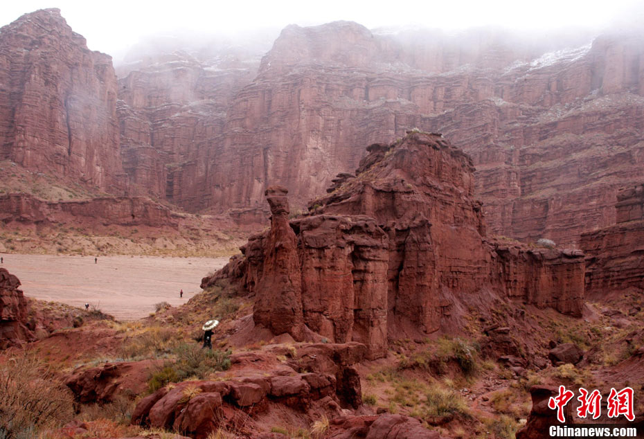 溫宿大峽谷是中國(guó)西部最美的丹霞地質(zhì)奇景、中國(guó)最大的巖鹽喀斯特地質(zhì)勝景。這里有中國(guó)罕見的遠(yuǎn)古巖鹽地質(zhì)絕景、中國(guó)西部奇特的雅丹地質(zhì)怪景、中國(guó)獨(dú)有的巨型巖溶蝕地質(zhì)秘境,堪稱新疆“活的地質(zhì)演變史博物館”。溫宿大峽谷主要由庫都魯克谷、阿奇克蘇谷兩條巨大蜿蜒的峽谷組成,其間分布有千余條形態(tài)各異的支谷,旅游觀光區(qū)域達(dá)到了200余平方公里,喀斯特地貌、丹霞地貌、雅丹地貌、次雅丹地貌、鹽丘底劈構(gòu)造地貌分布在峽谷之中,其地質(zhì)構(gòu)造的多樣性、復(fù)雜性和人文景觀的獨(dú)特性極具視覺沖擊力。中新社記者 趙雋 攝