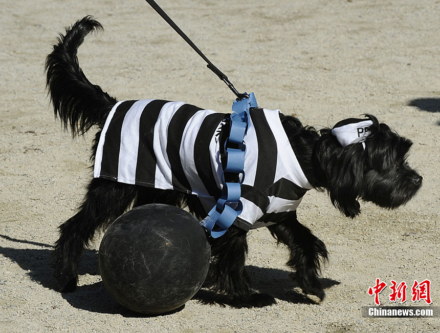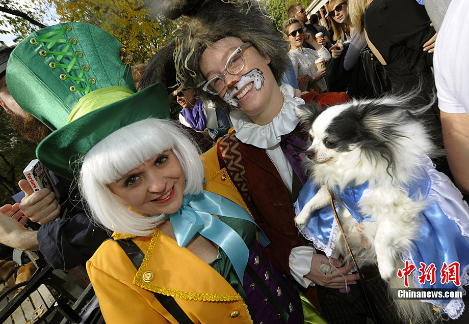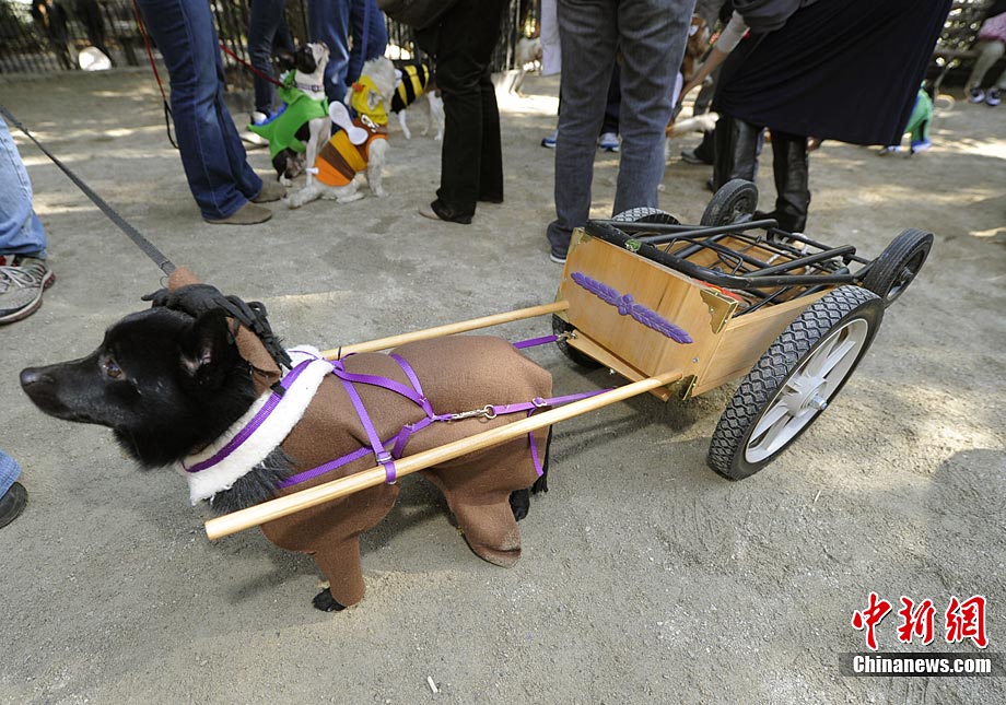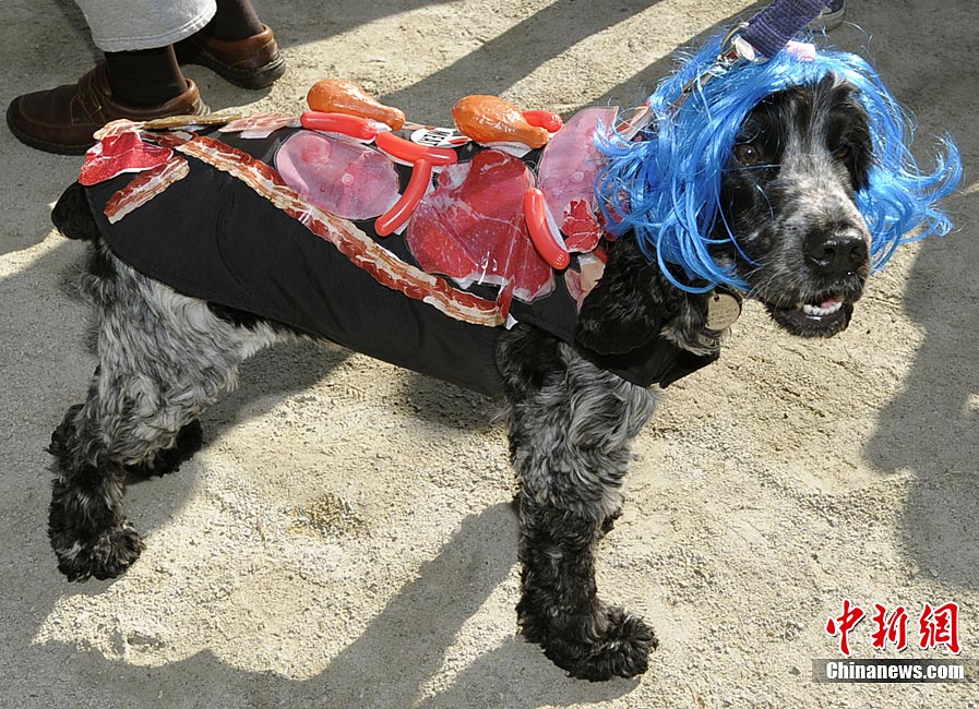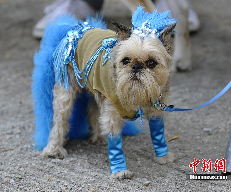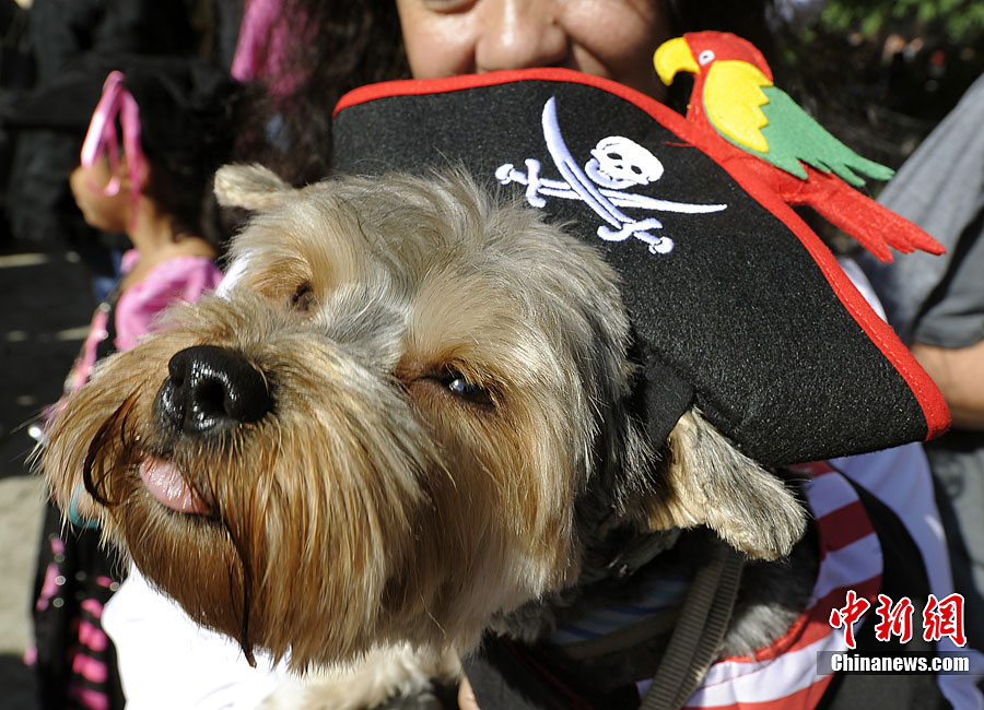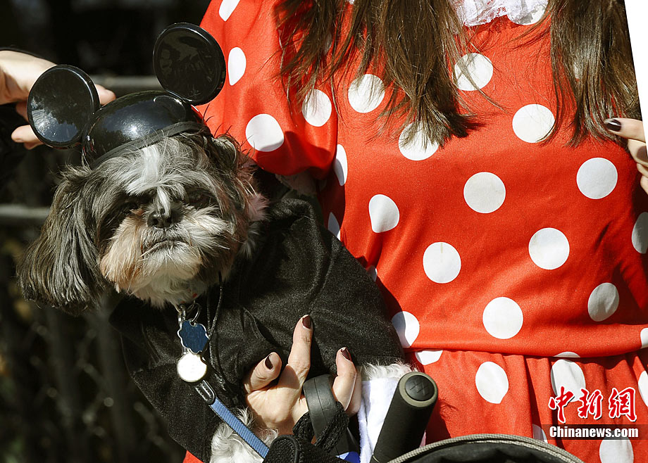 10月31日是西方傳統(tǒng)的萬圣節(jié)。當(dāng)?shù)貢r間10月23日美國紐約湯普金斯廣場公園舉行了第20屆萬圣節(jié)小狗大游行活動!俺鱿被顒拥男」穫冄b扮的造型都很別致,讓人忍俊不禁。
