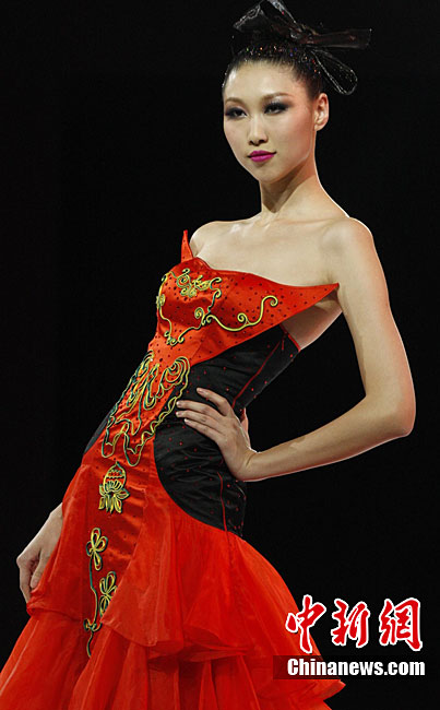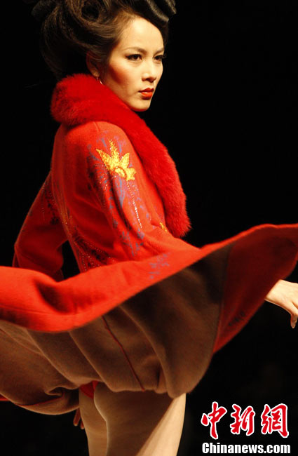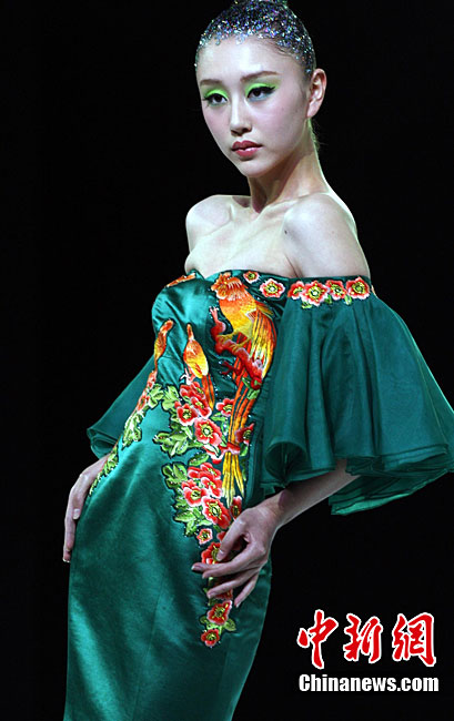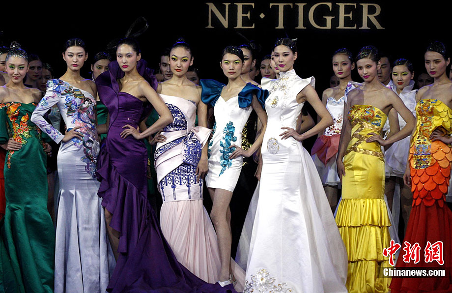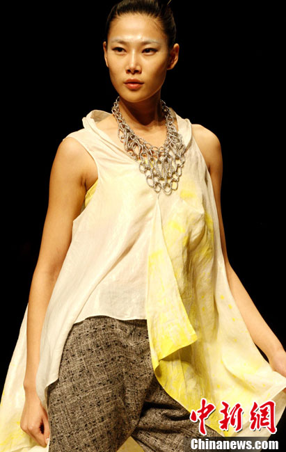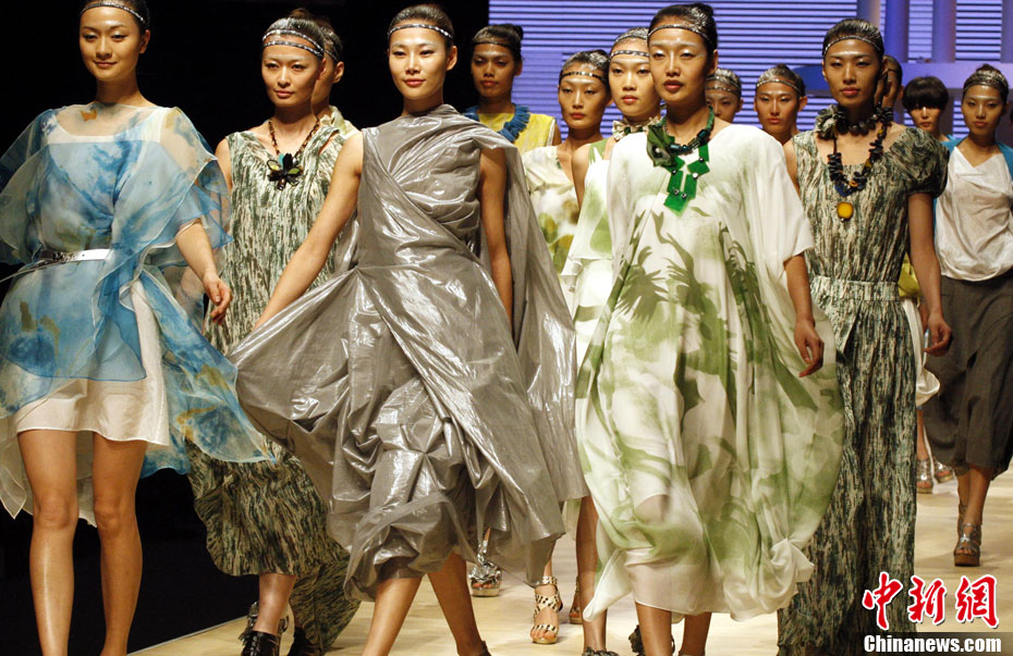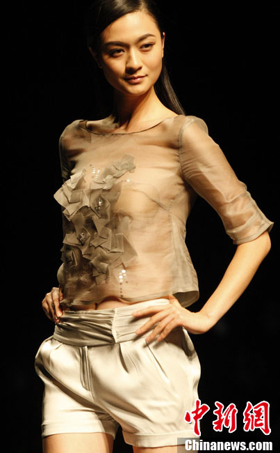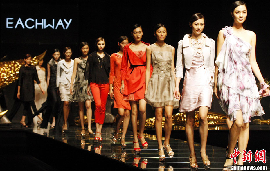 10月26日晚,正在北京舉行的中國(guó)國(guó)際時(shí)裝周上演EACHWAY·趙卉洲2011春夏時(shí)裝發(fā)布會(huì),該作品風(fēng)格簡(jiǎn)約自然、清新優(yōu)雅、大氣內(nèi)斂,贏得眾多職場(chǎng)女性的青睞。2011春夏系列包含三大主題:“深海精靈”(藍(lán)綠色系)、“夢(mèng)游幻境”(粉紫色系)、“雙色游戲”(米咖色系),圍繞摩登柔美和經(jīng)典的花卉印花兩大元素展開(kāi)。中新社記者 錢(qián)興強(qiáng) 攝