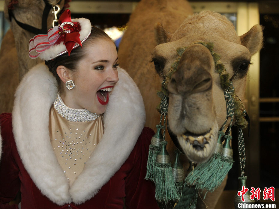 10月26日,美國“火箭女郎”舞蹈團(tuán)攜駱駝、綿羊等動(dòng)物一起出現(xiàn)在紐約無線電城前,為即將到來的圣誕大匯演造勢(shì)。今年的無線電城圣誕大匯演將于11月5日至12月30日舉行。