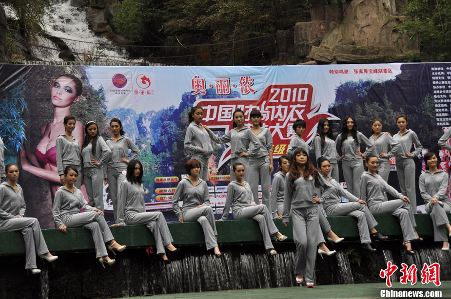 “2010中國時尚內(nèi)衣模特大賽”晉級賽10月28日下午在世界自然遺地產(chǎn)地——張家界武陵源寶峰湖風(fēng)景區(qū)開賽。來自北京、上海等地的72名內(nèi)衣佳麗一展身姿,爭奪前30名決賽資格。11月5日,“奧麗儂杯·2010中國時尚內(nèi)衣模特決賽暨頒獎盛典”將在張家界魅力湘西國際文化廣場火熱上演。吳勇兵 唐純禮攝