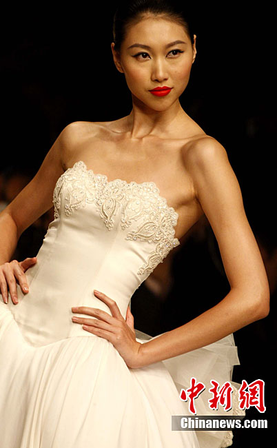 10月30日,正在北京舉行的中國國際時裝周上舉行LeaSeong(成受燕)“花之精靈”專場秀!癓eaSeong,旅美韓裔服裝設(shè)計師,曾在紐約“CalvinKlein”擔任女裝設(shè)計師。2008年擁有了自己的品牌“LeaSeong”并且創(chuàng)立了自己的公司。自此,她的時裝定期出現(xiàn)在中國時裝周的舞臺上,并多次獲得“時裝發(fā)布會特別獎”。2011春夏時裝秀,“LeaSeong”奉上以“花之精靈”為主題的視覺盛宴!癓eaSeong”把精靈們的精神巧妙地運用到自己的風格中。圖為旅美韓裔服裝設(shè)計師LeaSeong(成受燕)“花之精靈”專場秀。中新社記者 錢興強 攝