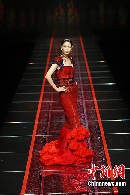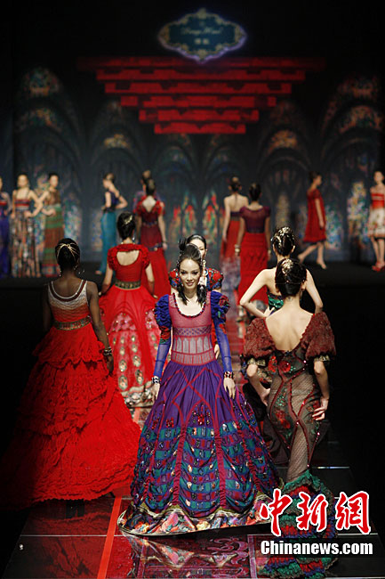 10月31日晚,“東方夏娃”托尼、李當岐、張肇達時裝藝術秀在北京舉行,這場秀是由3位在文化藝術領域幾乎沒有“交集”的大師級人物共同主創(chuàng),他們是國內(nèi)知名教育學者李當岐教授、英國頂級雕塑家托尼、杰出服裝設計師張肇達。中新社記者 盛佳鵬 攝