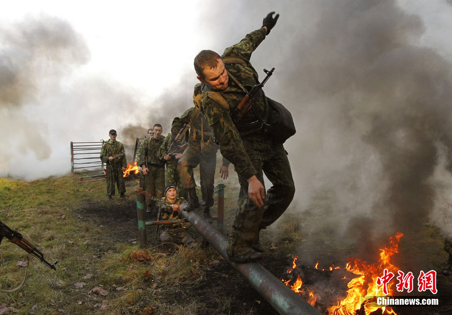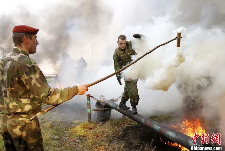 11月3日,白俄羅斯特種部隊(duì)士兵參加爭(zhēng)取佩戴“紅色貝雷帽”的資格考試。