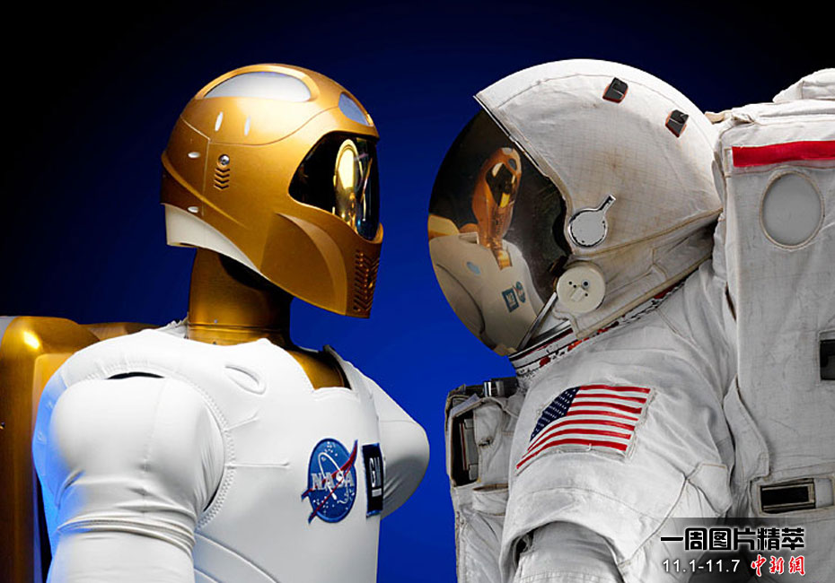 全球首個(gè)太空機(jī)器人(左)定于11月3日跟隨美國(guó)“發(fā)現(xiàn)”號(hào)航天飛機(jī)前往國(guó)際空間站,在那里度過(guò)自己的“一生”,它將在國(guó)際空間站完成一系列測(cè)試工作。