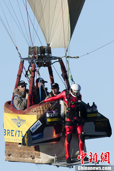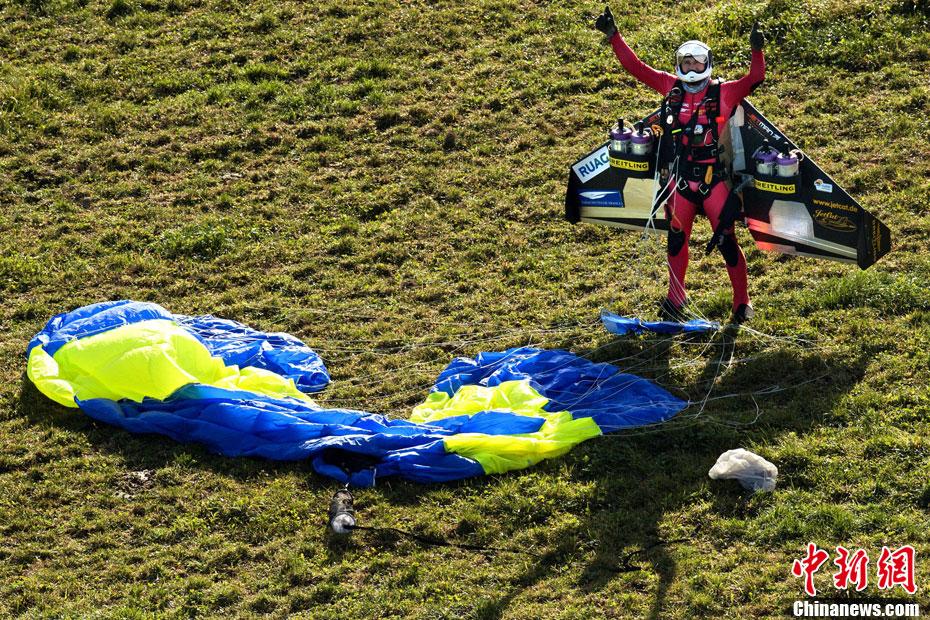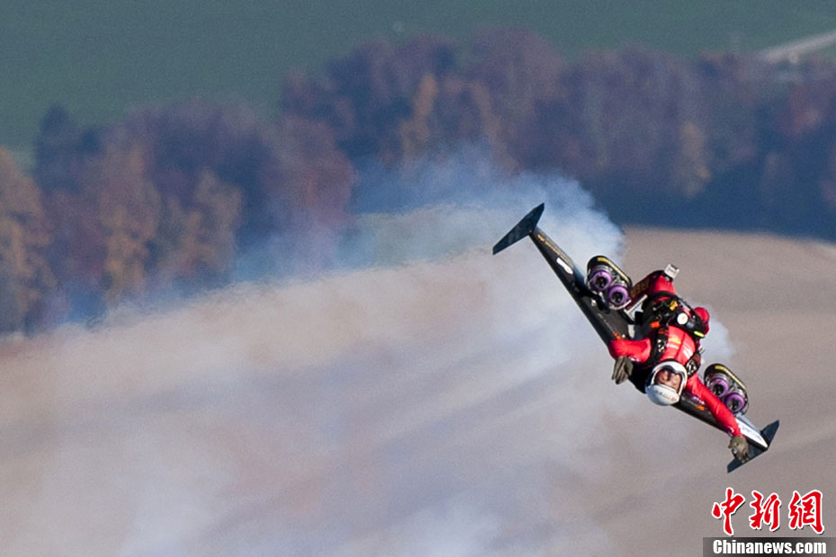 當(dāng)?shù)貢r間2010年11月5日,瑞士貝爾謝“火箭人”伊夫-羅西使用裝有小型噴氣發(fā)動機(jī)的噴氣動力翼,首次完成空中翻轉(zhuǎn)特技。