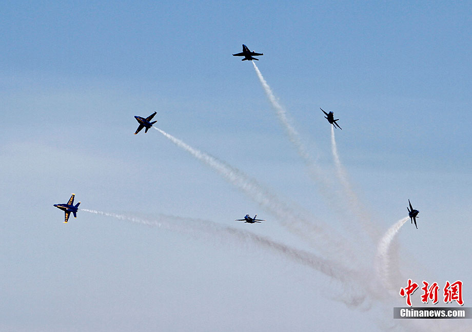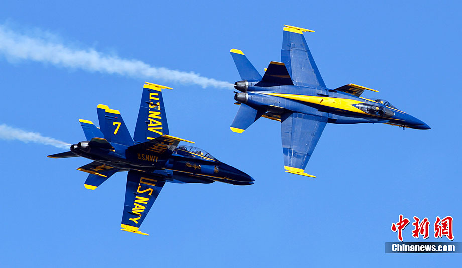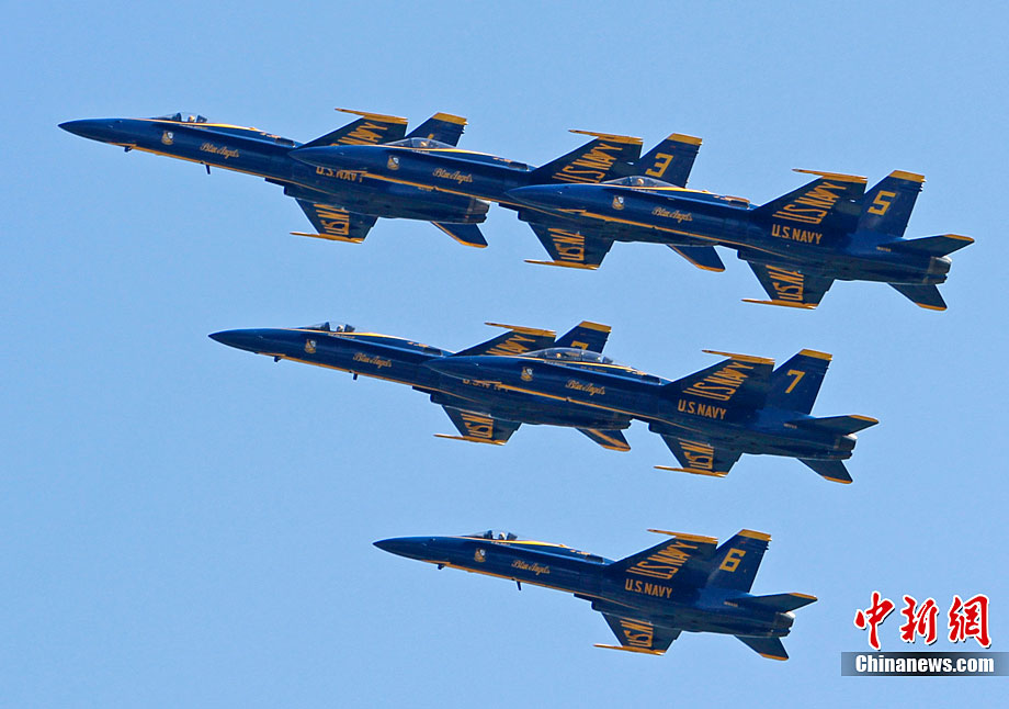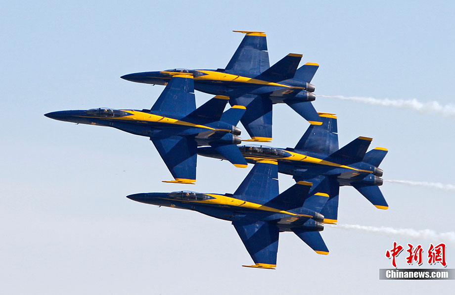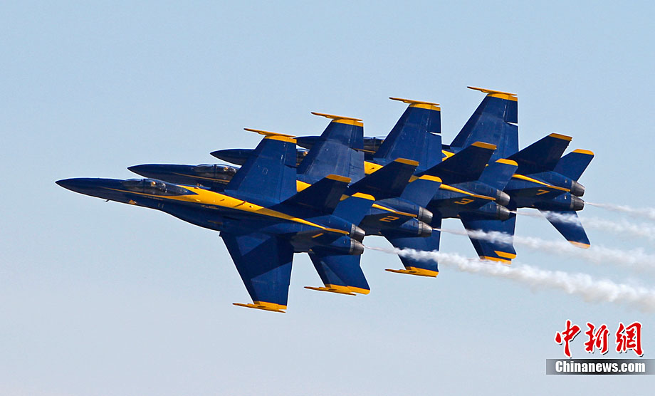 當(dāng)?shù)貢r間11月5日,美國邁阿密近郊的霍姆斯帝德空軍儲備基地為當(dāng)?shù)鼐用窈陀慰蜕涎萘司式^倫航空飛行表演。世界上最優(yōu)秀的特技飛行表演隊之一,同時也是目前世界上唯一一支屬于海軍航空兵的飛行表演隊--美國海軍“藍(lán)天使”飛行表演隊駕駛f/a-18“大黃蜂”戰(zhàn)斗機,翱翔藍(lán)天,上演令人驚嘆,眼花繚亂的空中特技。