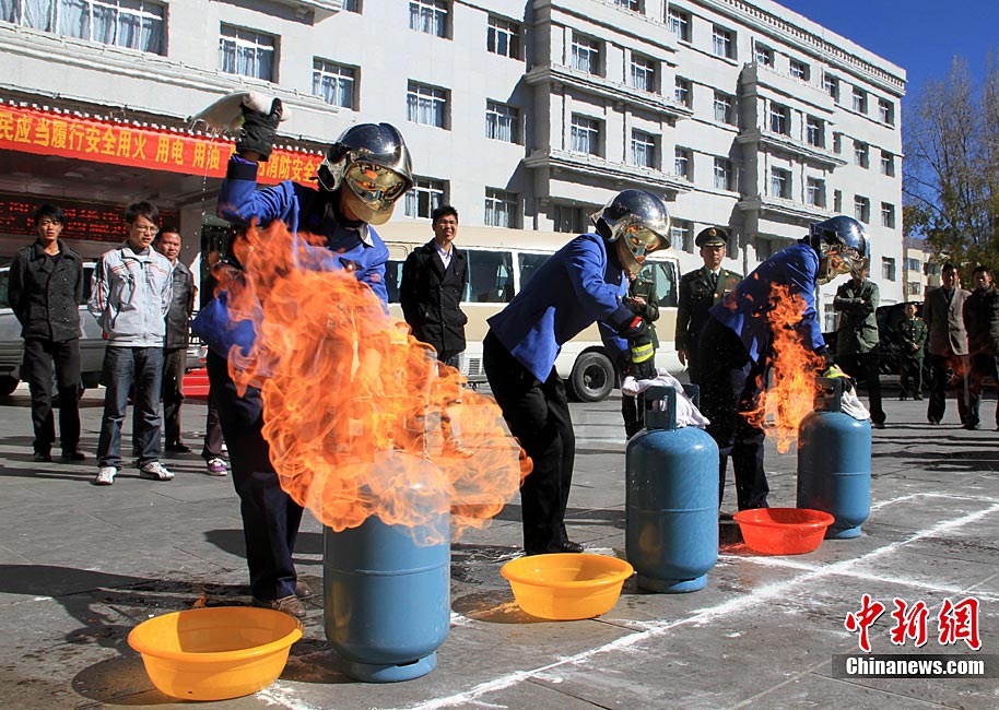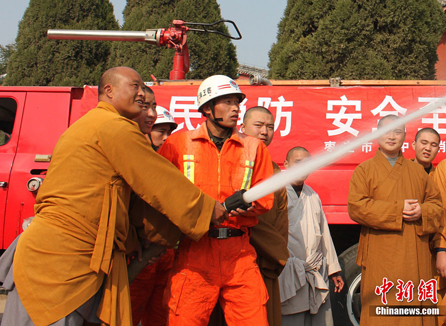 在第20個(gè)“11.9”全國(guó)消防日前夕,11月7日,山東省棗莊市公安消防部門針對(duì)寺廟用火、用電增多,火災(zāi)風(fēng)險(xiǎn)不斷增大的實(shí)際情況,在轄區(qū)開展了消防“進(jìn)寺廟”宣傳活動(dòng),讓寺廟的僧眾掌握基本消防知識(shí),提高消防意識(shí)。今年全國(guó)“消防日”宣傳活動(dòng)的主題是“全民關(guān)注消防·生命安全至上”。季龍 攝 圖片來(lái)源:CNSPHOTO