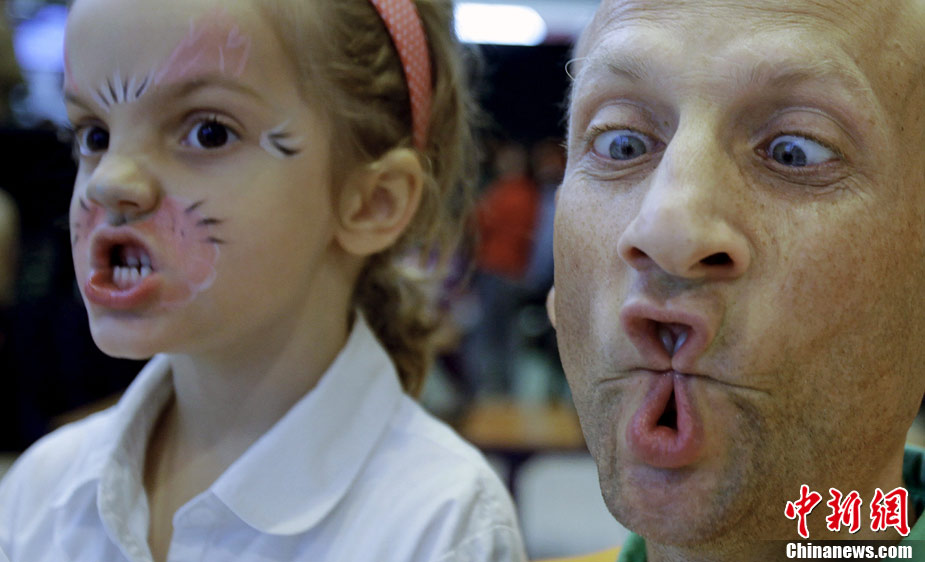 11月7日,匈牙利首屆鬼臉大賽在布達(dá)佩斯舉行,參賽的選手們?cè)诒荣愔薪g盡腦汁扮出各種怪異的模樣。