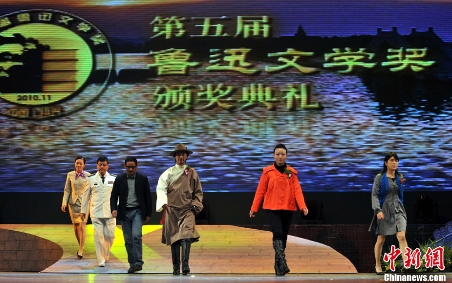 11月9日晚,第五屆魯迅文學(xué)獎(jiǎng)?lì)C獎(jiǎng)典禮在魯迅故鄉(xiāng)浙江紹興舉行。30位魯迅文學(xué)獎(jiǎng)得主分別獲得報(bào)告文學(xué)、散文雜文、詩歌、評(píng)論、中篇小說、短篇小說等類別的獎(jiǎng)項(xiàng)。武漢市紀(jì)委書記車延高的詩集《向往溫暖》摘得魯迅文學(xué)獎(jiǎng)詩歌獎(jiǎng)項(xiàng)。袁云 攝