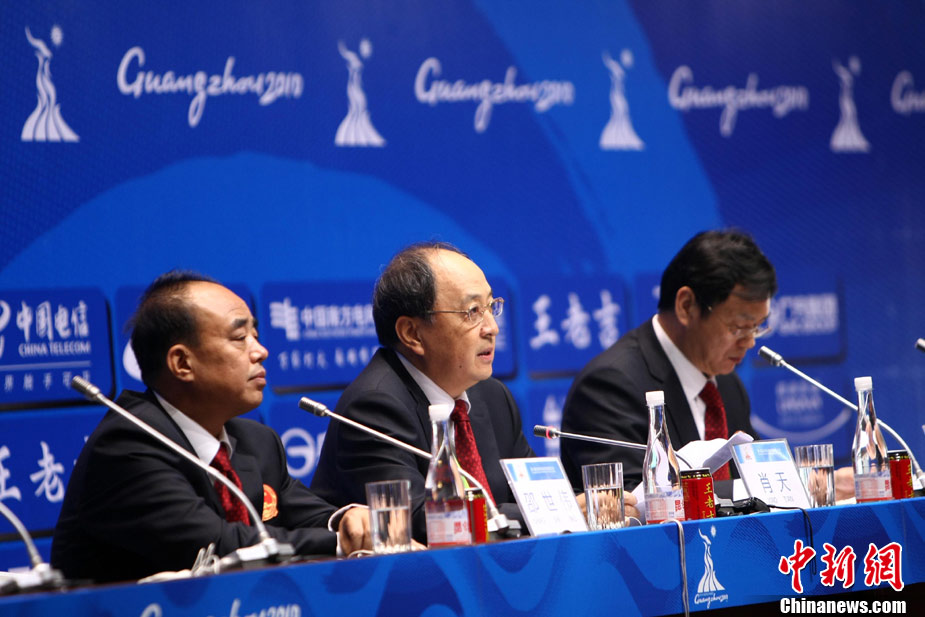11月10日,中國體育代表團(tuán)新聞發(fā)布會(huì)在亞運(yùn)主媒體中心一號(hào)新聞廳召開。中國體育代表團(tuán)副團(tuán)長(zhǎng)肖天就目前媒體記者關(guān)注的問題做了回答。 中新社記者 杜洋攝