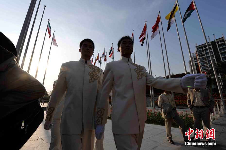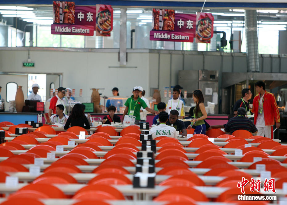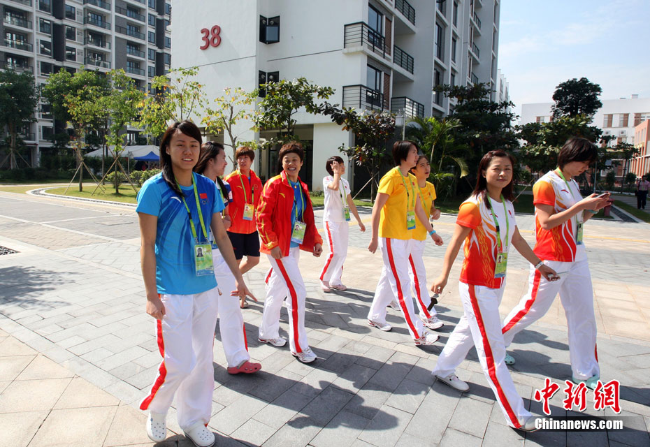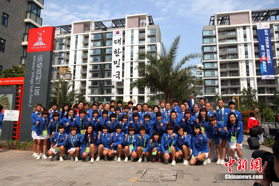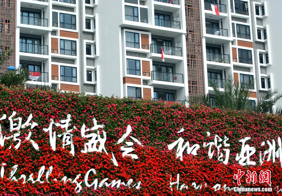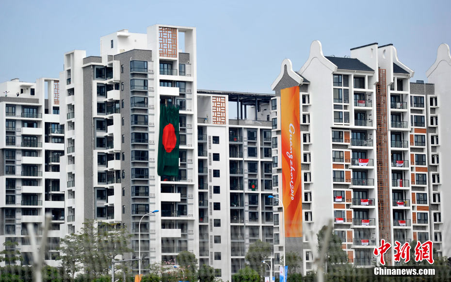 和歷屆亞運(yùn)會不同,廣州亞運(yùn)會沒有延續(xù)“亞運(yùn)村”的概念,而是打造了一座亞運(yùn)城,而運(yùn)動員村則是亞運(yùn)城的核心。運(yùn)動員村位于亞運(yùn)城內(nèi),總建筑面積59.1332萬平方米。運(yùn)動員村共有49棟公寓樓、3598套公寓、9272間客房。應(yīng)該說,運(yùn)動員村是一個高度專業(yè)化、集約化和規(guī)范化的居住區(qū)域,這里將為運(yùn)動員及隨隊官員提供住宿分配、客房、洗衣、布草洗滌、居民服務(wù)中心等住宿服務(wù),全部是一條龍服務(wù)。圖為運(yùn)動員公寓外景,不少運(yùn)動員將自己國家的國旗懸掛在窗外。中新網(wǎng)記者 金碩 攝
