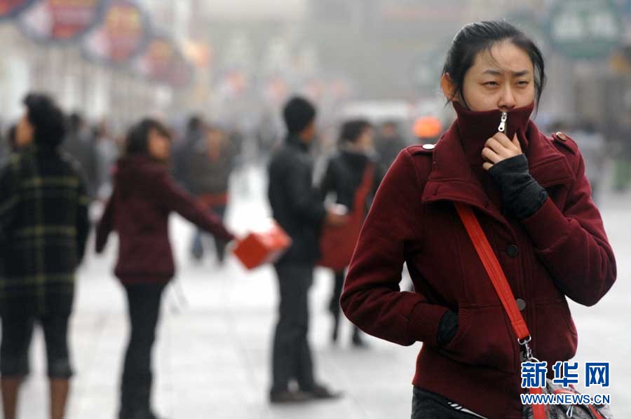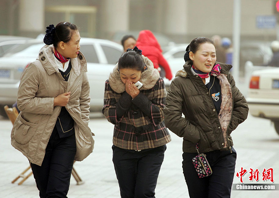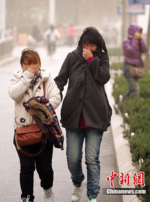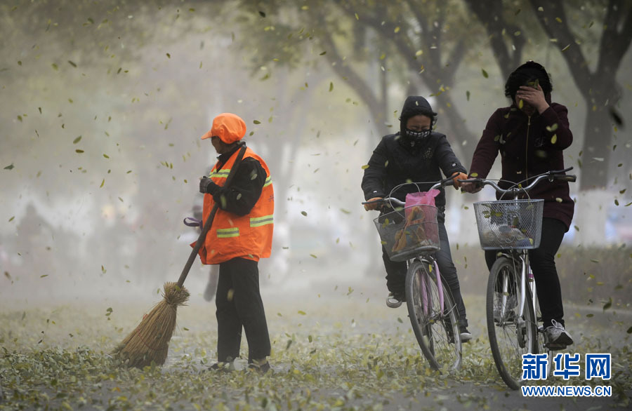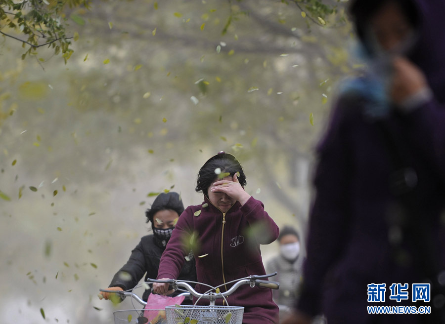 11月11日,濰坊市民在黃沙籠罩中艱難出行。當(dāng)日,一股從西北來的冷空氣開始影響山東省,同時(shí)山東省氣象臺發(fā)布了海上大風(fēng)黃色預(yù)警,西北風(fēng)裹著沙塵吹在臉上著實(shí)讓人難受。圖片來源:CNSPHOTO 張馳 攝